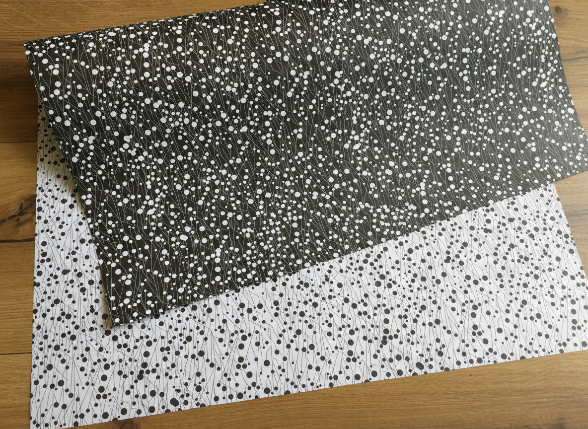 Sehr apartes, doppelseitig bedrucktes Geschenkpapier von My Pretty Circus (Frankfurt a. M.).