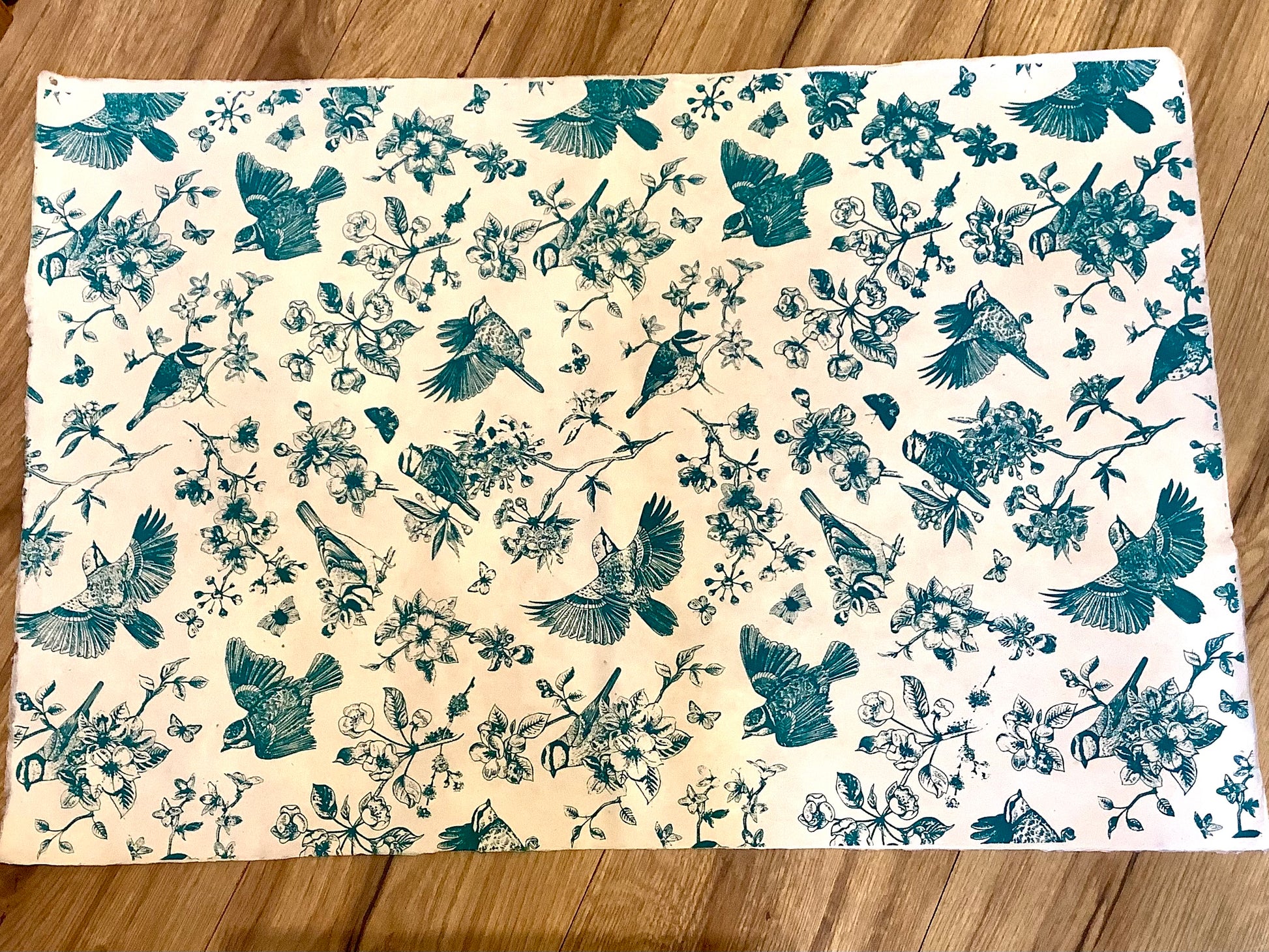Geschenkpapier Vögel petrol handgeschöpft Nepalokta