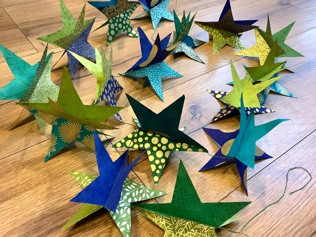 Zauberhafte weihnachtliche Girlanden / Mobilés aus handgeschöpftem und fair gehandeltem Papier (Lokta-Papier) aus Nepal.