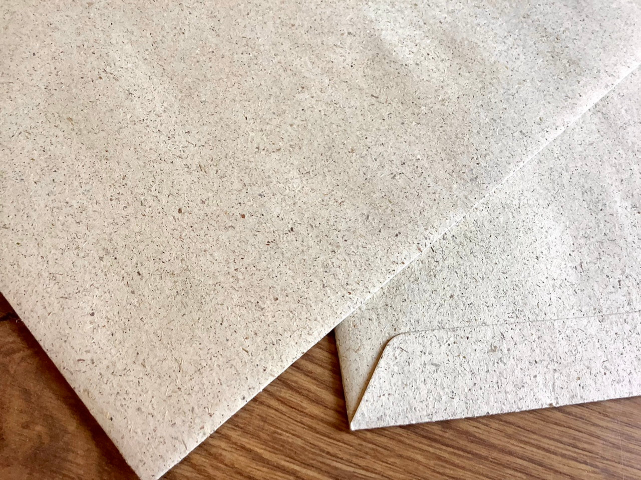 Das Papier für diese Versandtasche besteht zu 40 % aus Grasfasern. Die anderen 60 % stammen aus Frischfasern aus nachhaltiger Forstwirtschaft.