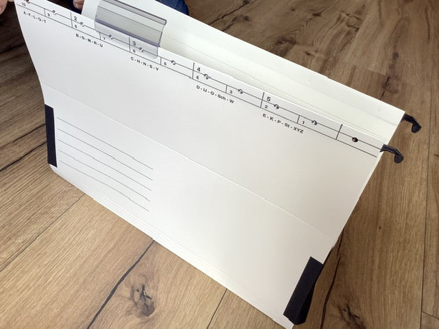 1 Hängetasche für die lose Ablage von A4-Papieren im Hängeregister.
