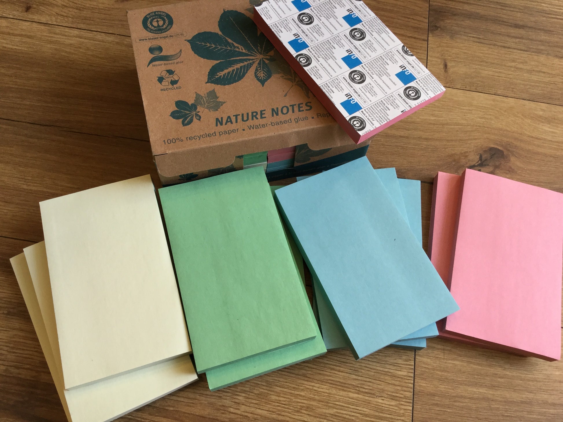 12 quadratische Haftnotizblöcke (125 x 75 mm) aus 100 % Recyclingpapier: