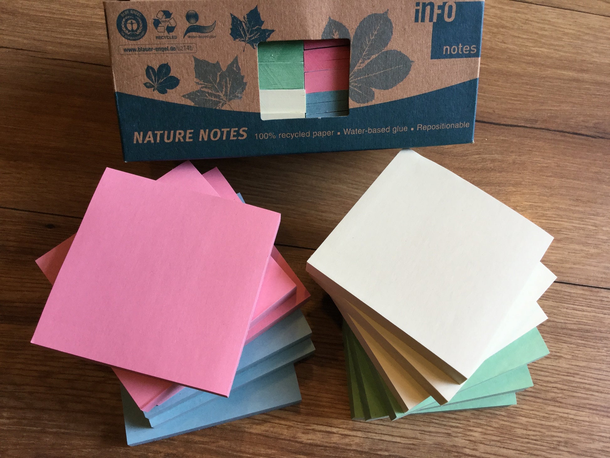 12 quadratische Haftnotizblöcke (70 x 70 mm) aus 100 % Recyclingpapier: