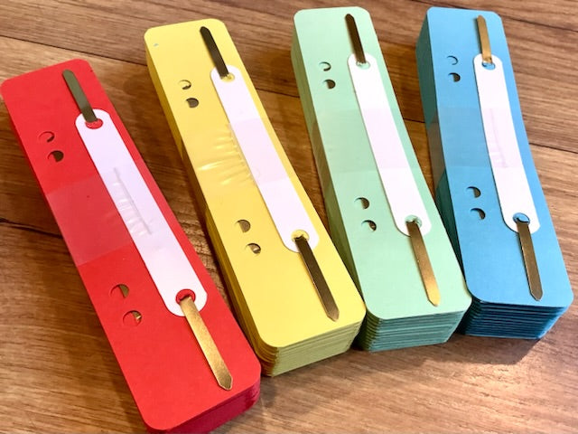 Pack mit 25 Heftstreifen (Aktendullis) aus Karton.