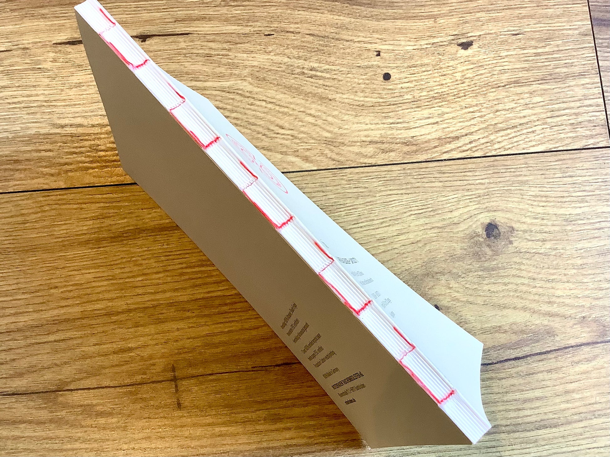 - offene Fadenbindung (mit rotem Faden), ermöglicht ein ganz flaches Aufschlagen