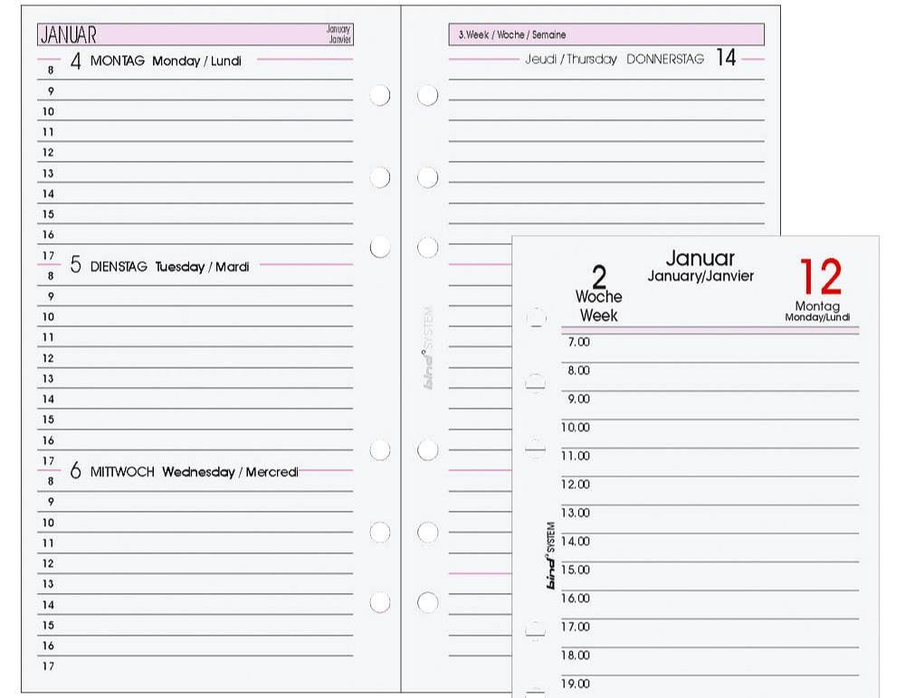 Kalendereinlagen 9,5 x 17,2cm bind 6-loch 1W/2S 2026