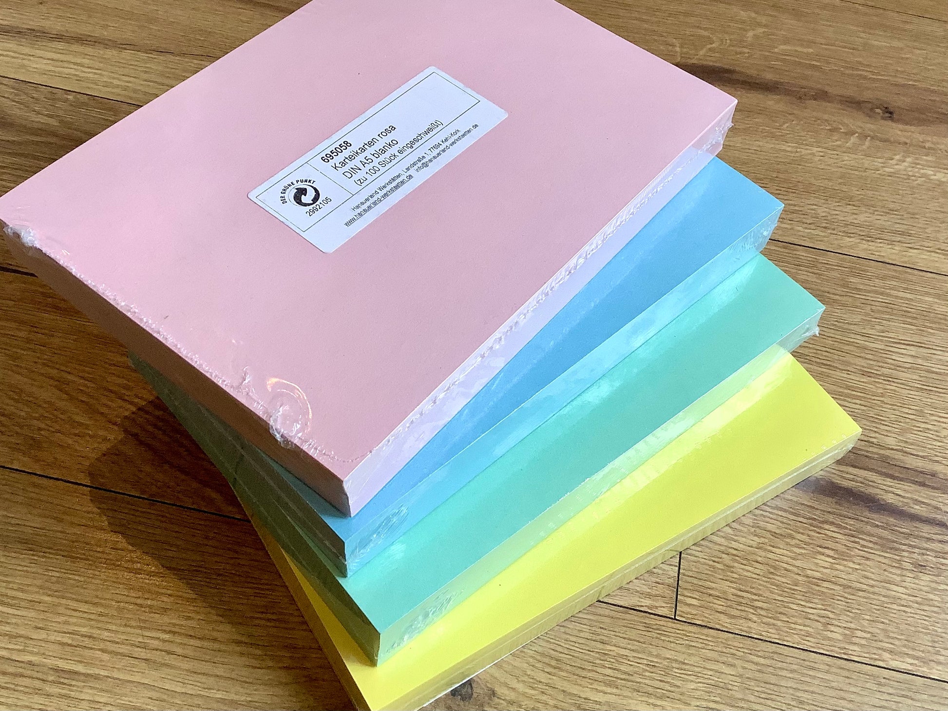 Päckchen mit je 100 Karteikarten aus Recyclingkarton (Altpapier):