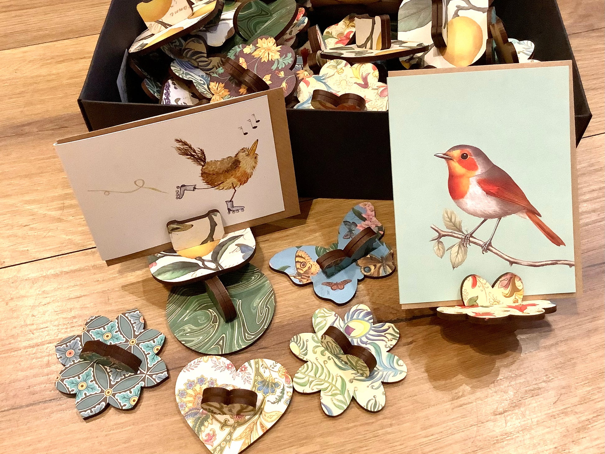In Berlin hergestellt aus MDF-Platten - mit per Hitze aufgepresstem (aufgebranntem) Geschenkpapier - jedes Stück ein Unikat.
