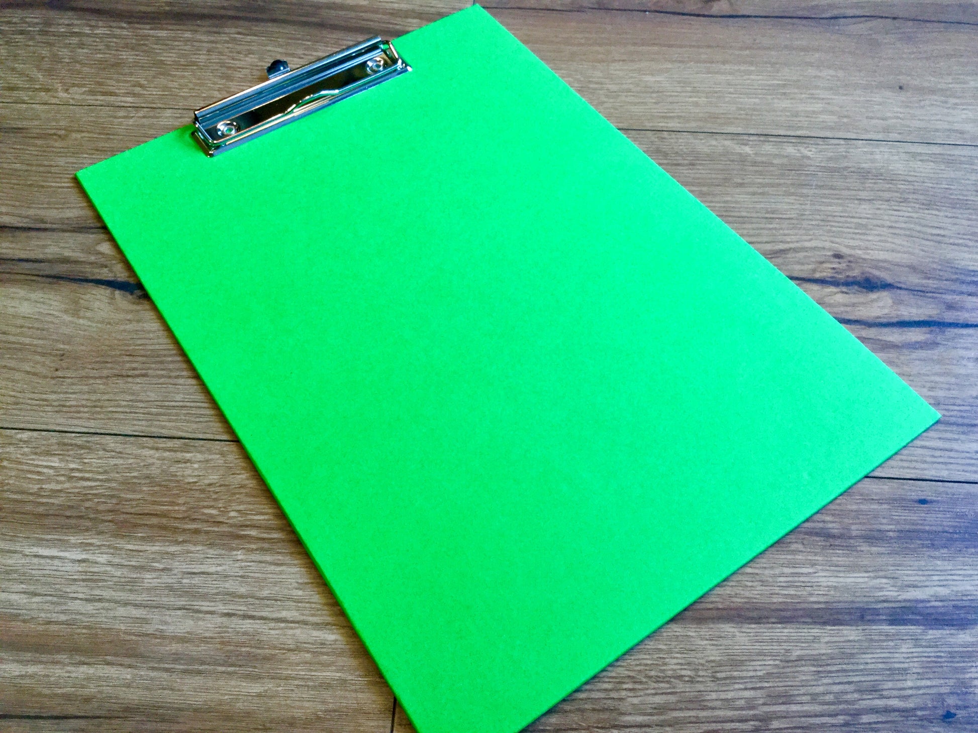 Schickes und hochwertig verarbeitetes Klemmbrett für A4-Papiere in grün.