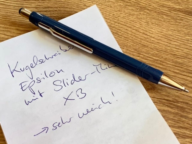 - der Epsilon ist durch das clevere Plug+Play-System mit verschiedenen Minen nachfüllbar (Großraumminen im Schneider-Parkere-Format, auch Gelminen)