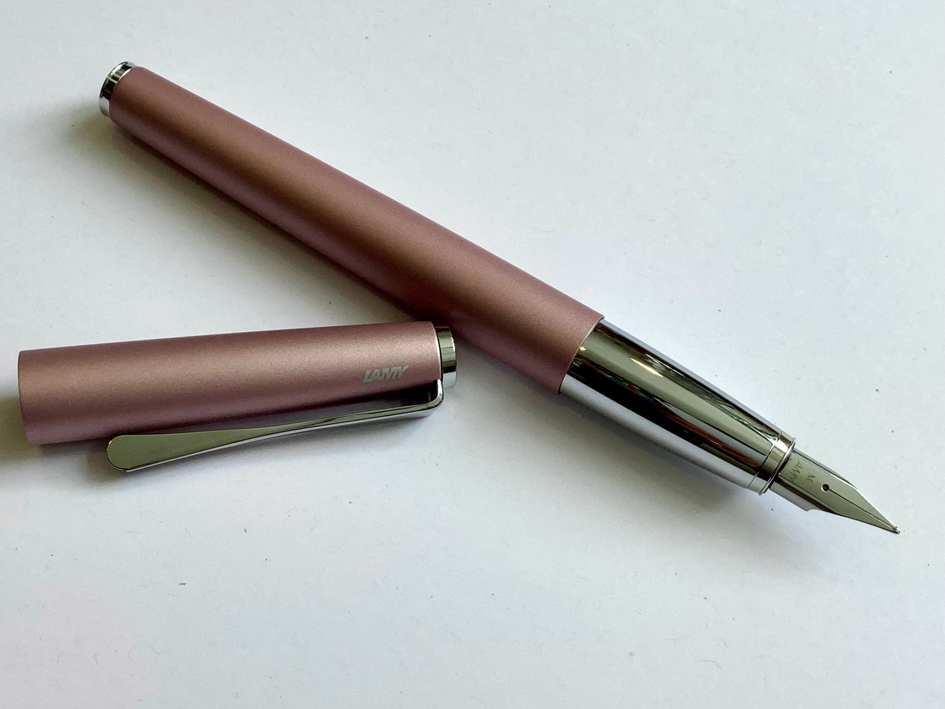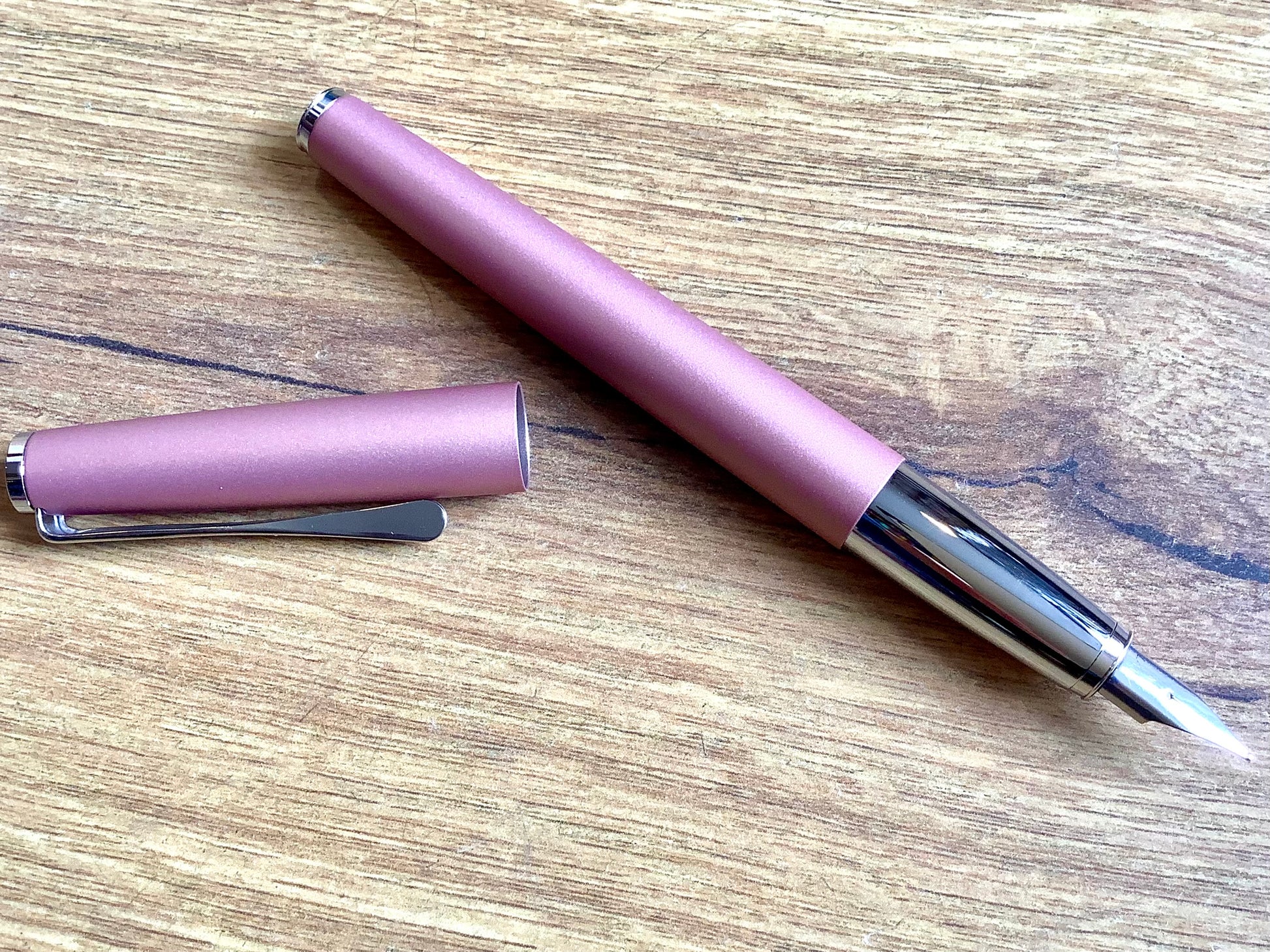 Füllhalter aus rostfreiem Edelstahl, Softlack-Finish in matt dunkelblau oder rosé (bitte per Email bestellen falls ausverkauft).
