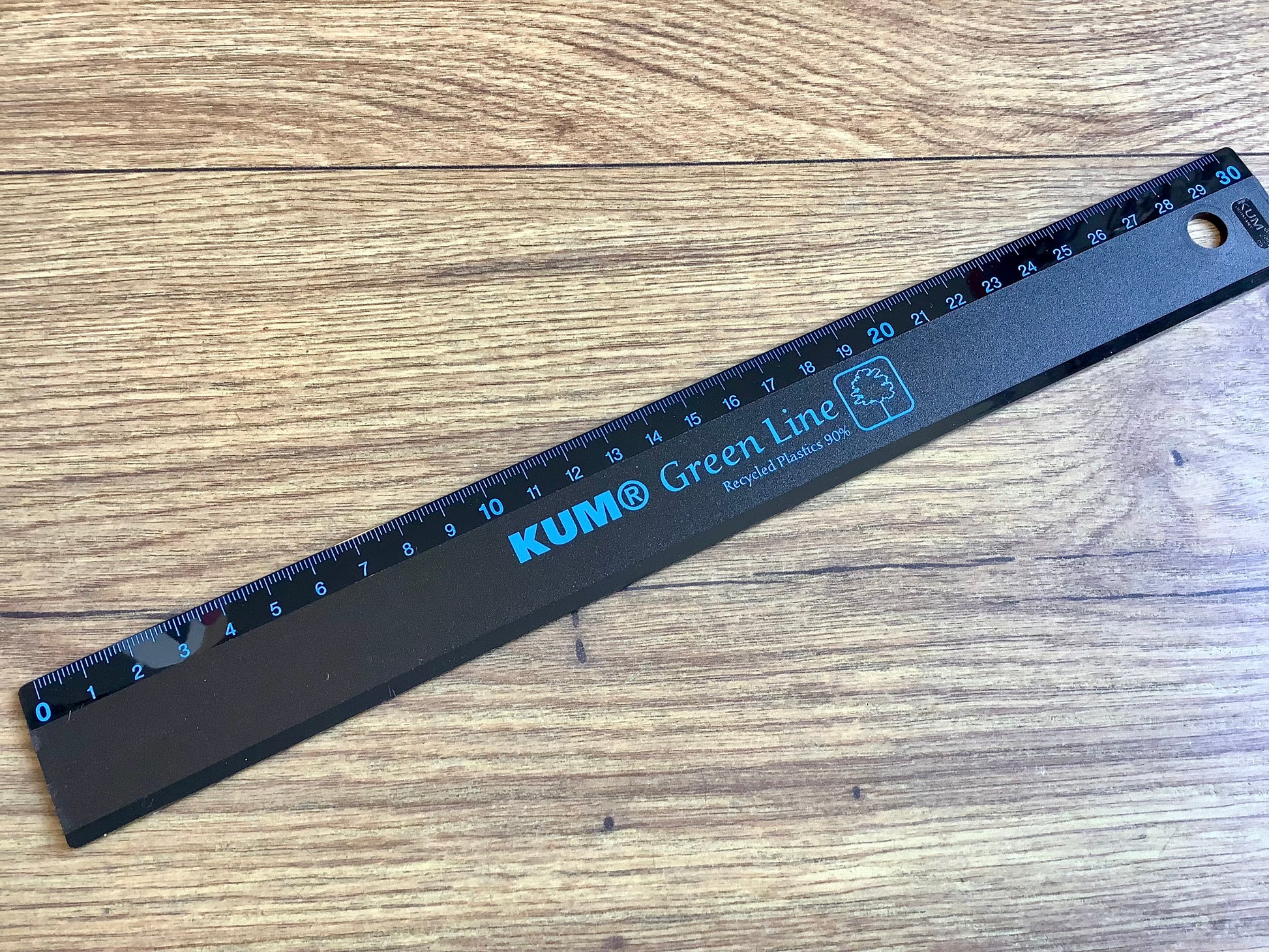 30 cm langes Lineal aus schwarzem Recyclingplastik (80 %).