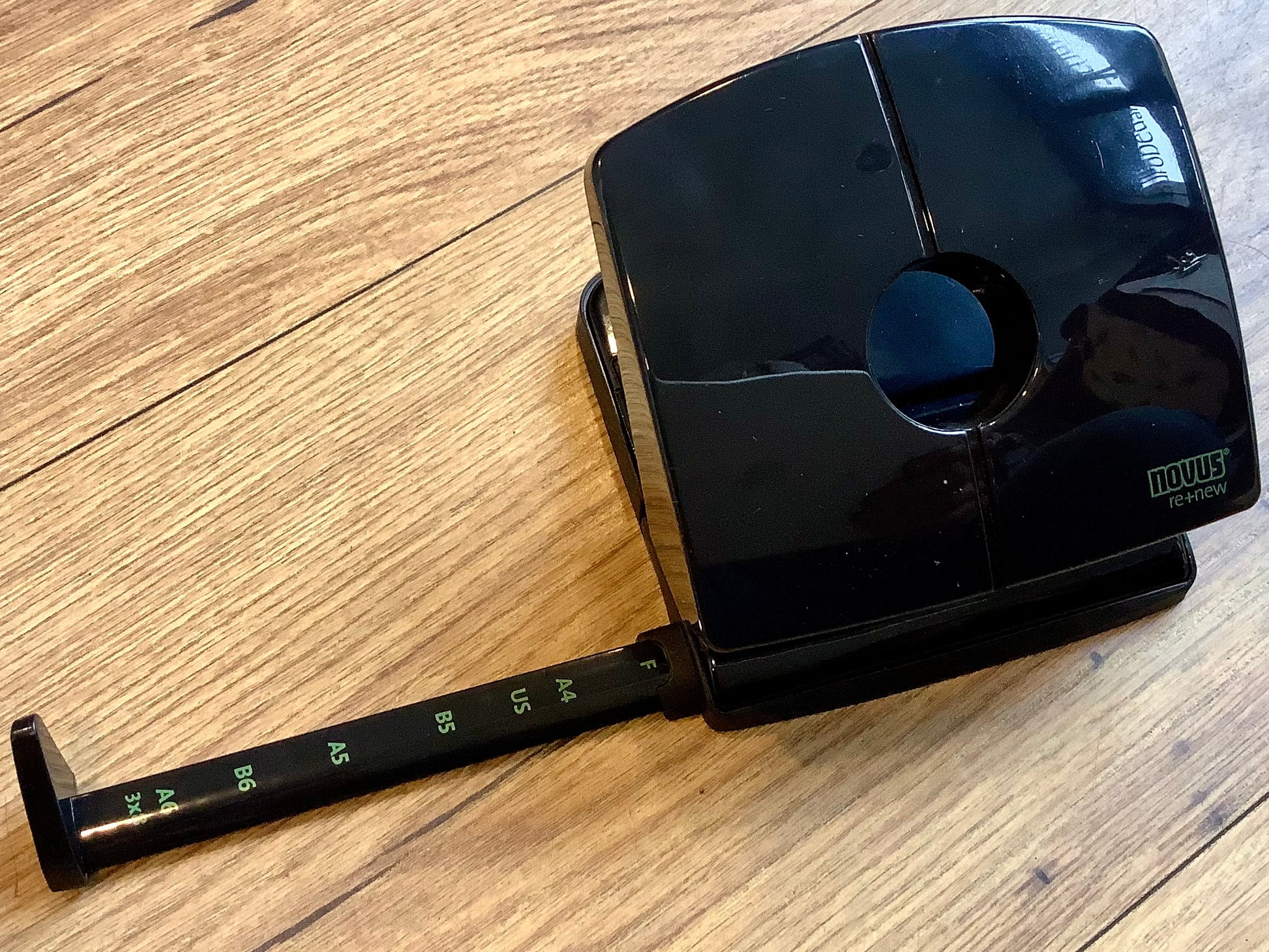 Eco-Locher von novus. Die Ummantelung besteht zu mindestens 64 % aus Recyclingplastik.