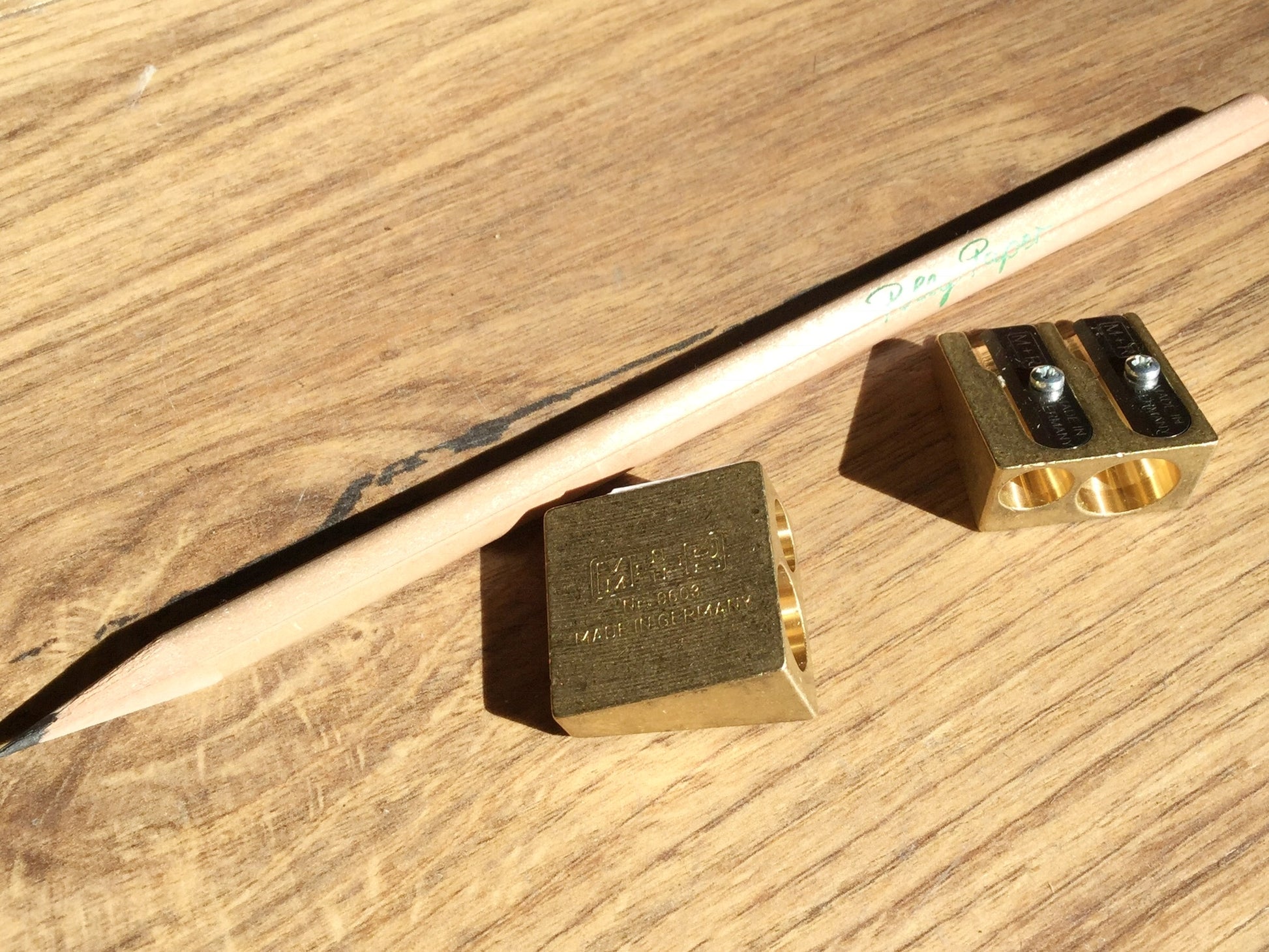 Schwerer, schöner und scharfer Doppelspitzer aus Messing.
