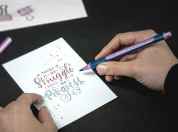 Der Metallic-Rollerball ist ideal für metallische Akzente beim Karten-Gestalten. Die Ultra-Smooth-Spitze transportiert die hochmetallische Tinte präzise aufs Papier.