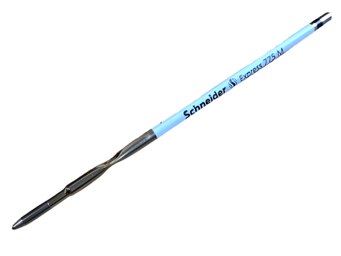 Premium-Metallmine im Standard-Format X20. Schreibfarbe schwarz. Strichstärke Medium (M) oder F. Dokumentenecht nach ISO 12757-2. Die verschleißfeste Edelstahlspitze garantiert, dass der Pastenvorrat vollständig und schmierfrei genutzt werden kann. Passend in alle Schneider-Kugelschreiber mit Plug+Play-System und viele andere Fabrikate.