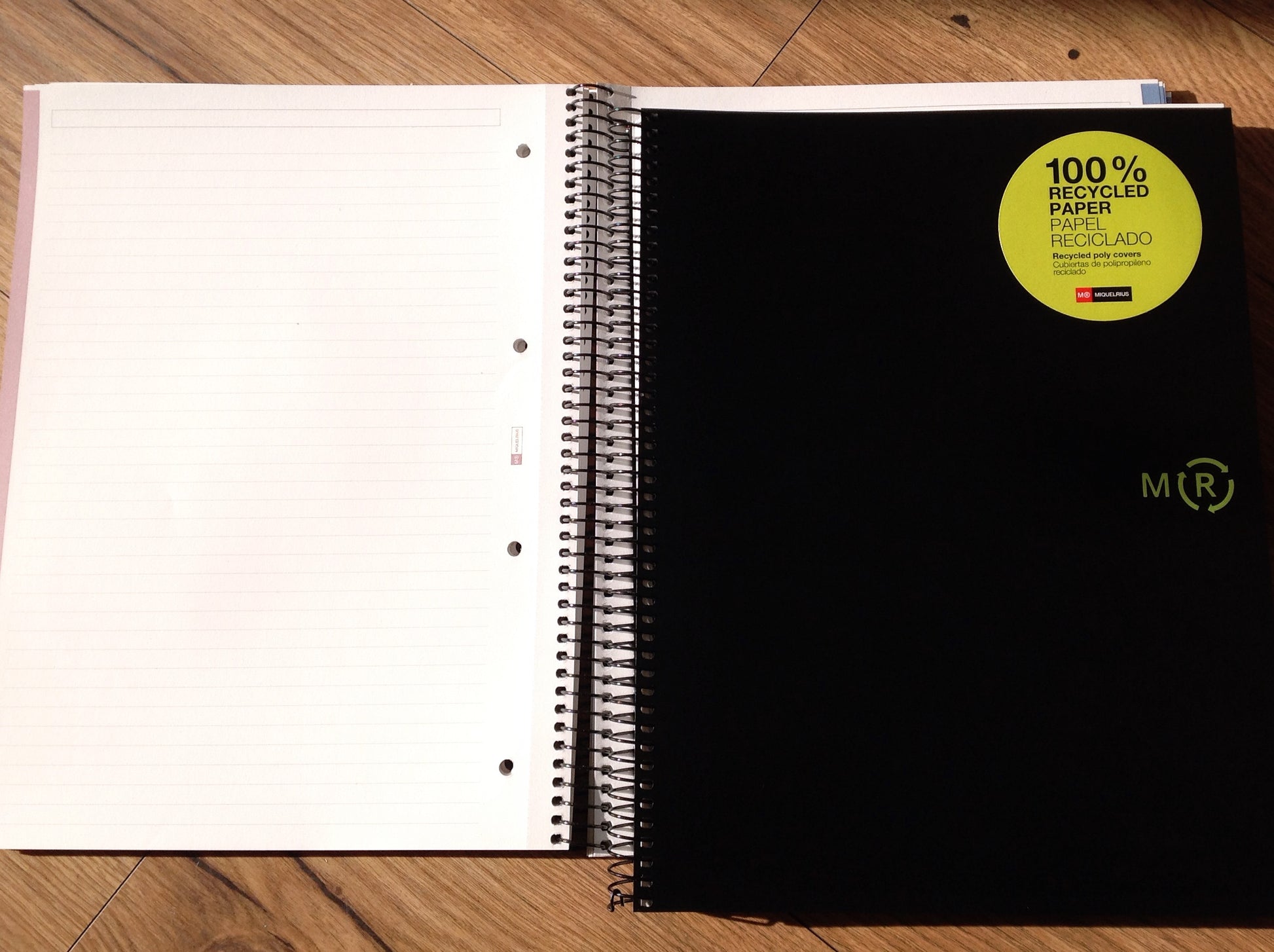 Das Cover ist aus schwarzem Recycling-PP (Polypropylen, reinsortig und recycelbar, bitte beim Entsorgen vom Papier trennen).