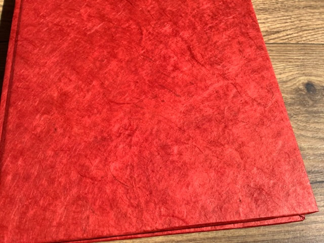 Das Buch ist mit handgeschöpftem Papier aus Nepal kaschiert. Das Papier zeichnet sich durch hohe Widerstands- und Alterungsbeständigkeit aus. Obwohl es sich sehr weich anfühlt, ist das Papier durch seine Zähigkeit sehr gut zum Kaschieren geeignet. Nepalokta-Papier wird nach uralter Methode aus der Rinde des Loktabaumes gewonnen. Aufgrund der schonenden Ernte regeneriert sich der Baum in wenigen Jahren.