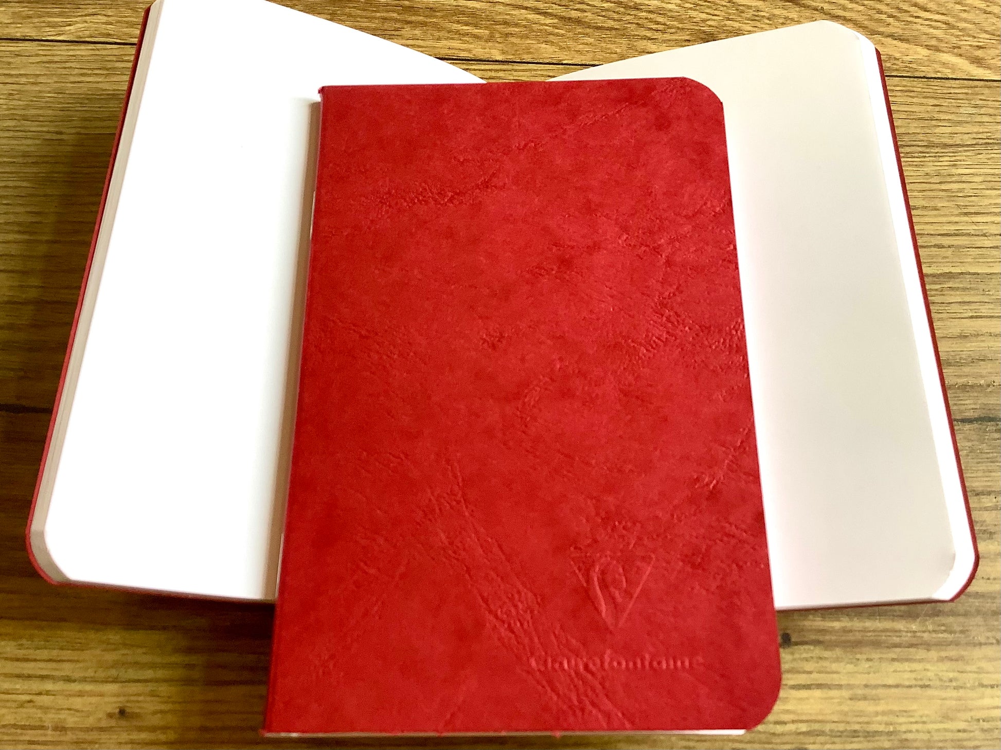 Ein kleines, handliches Notizheft mit farbigem Einband - mit der roten Farbe findet man es leicht in der Tasche wieder.