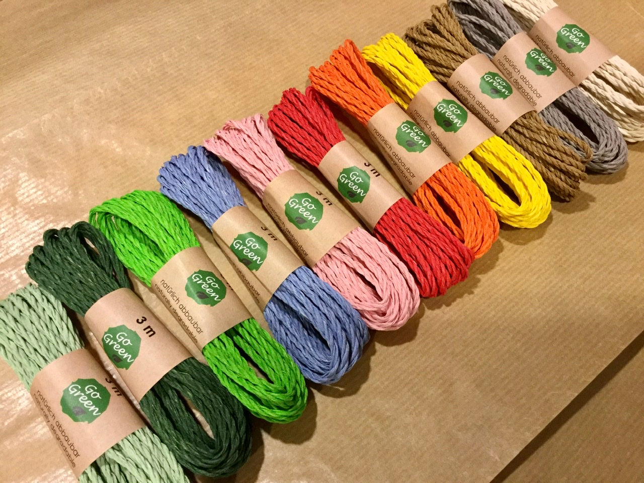 Baumwoll-Kordel, mit Farben auf Wasserbasis gefärbt, kompostierbar.