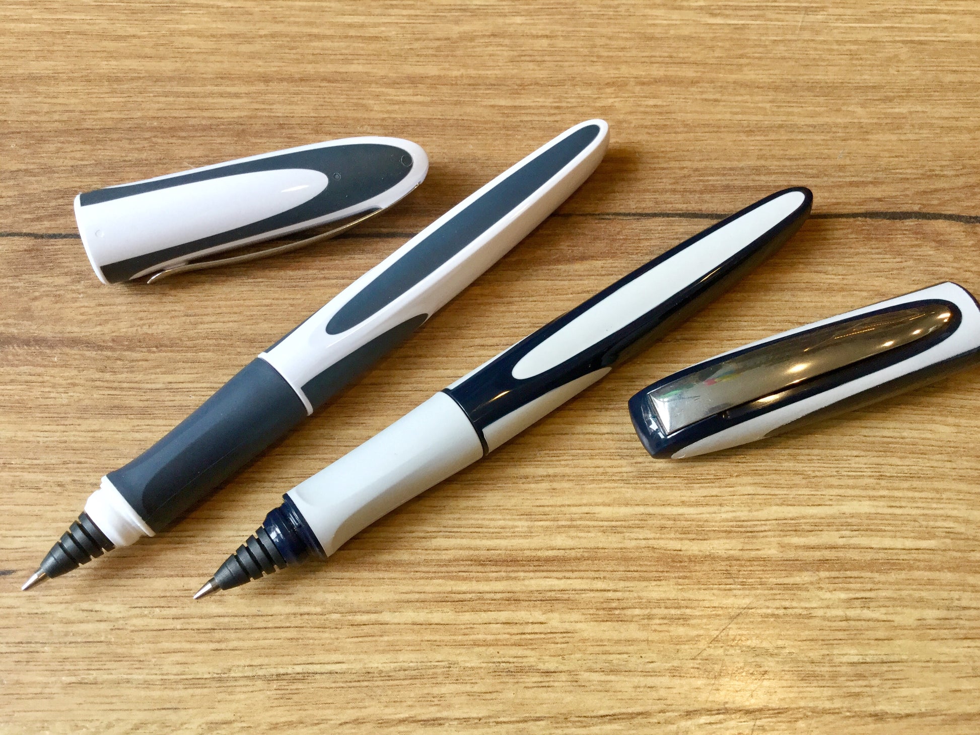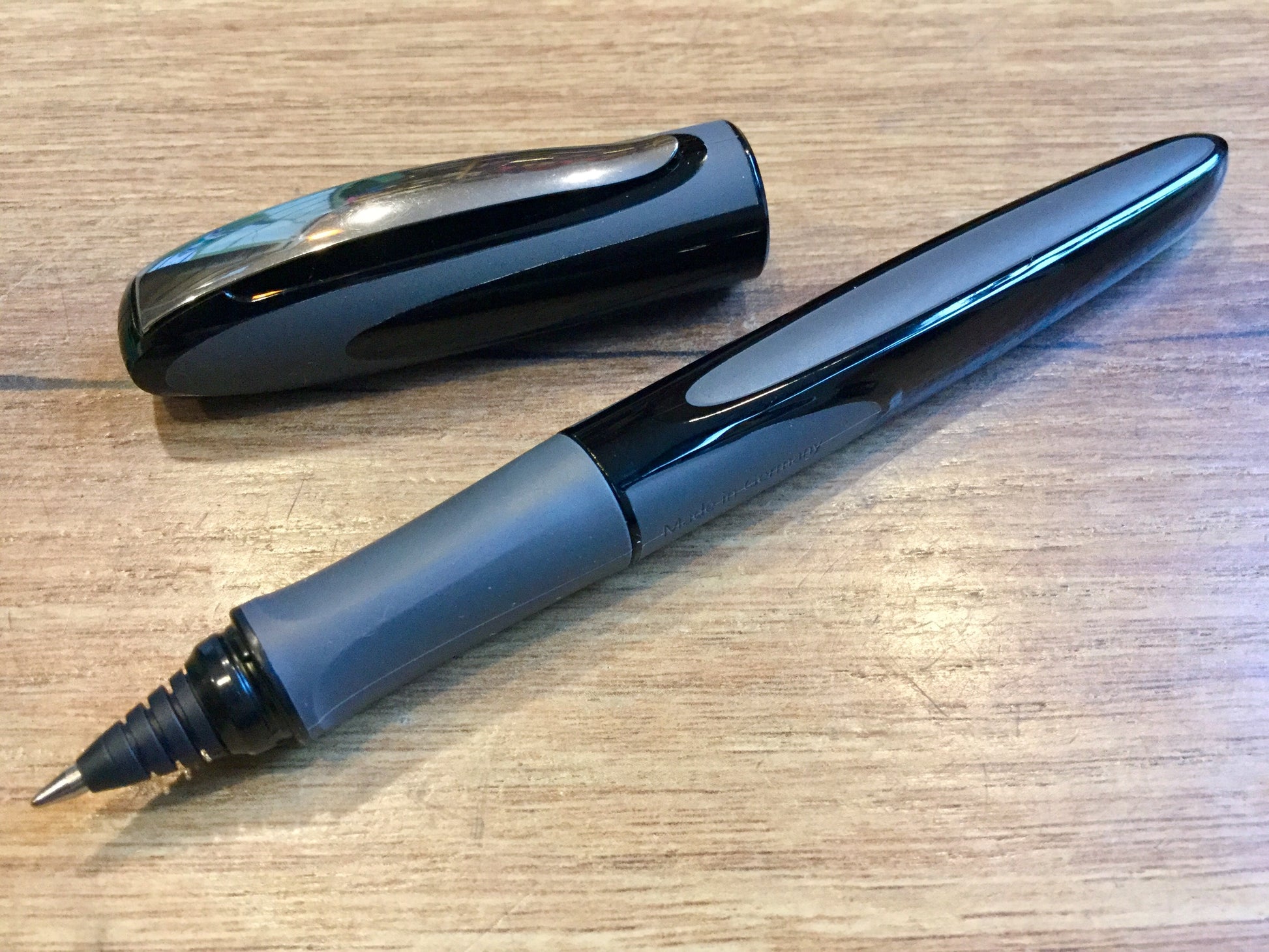 Der weich gleitende und ergonomisch geformte Tintenroller "Ray" schreibt mit normaler Füllertinte (in blau mit Tintenkiller löschbar).
