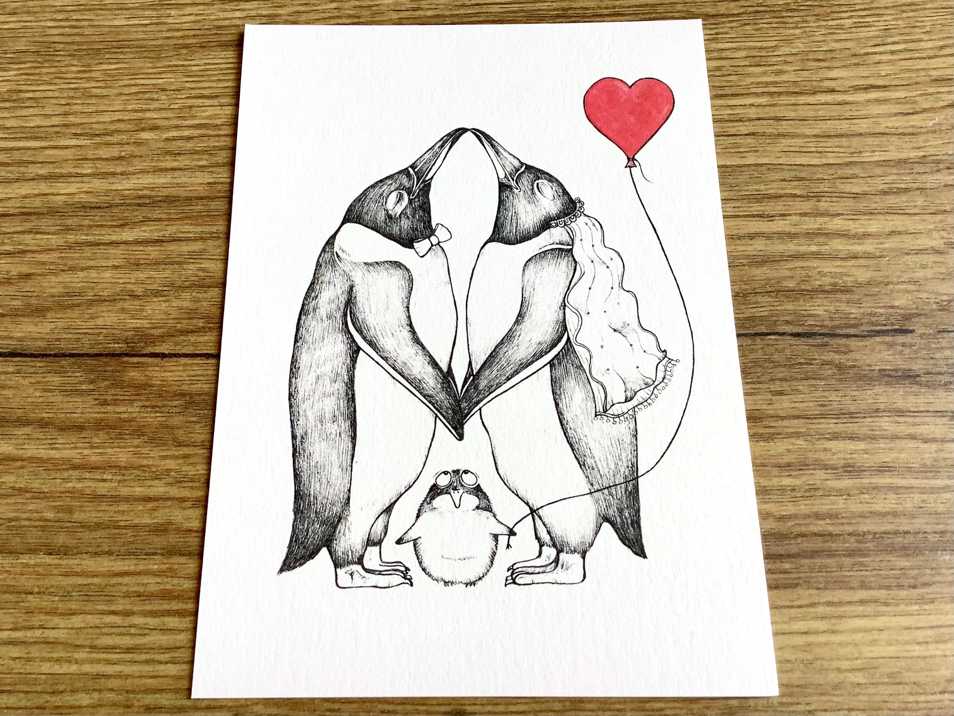 Postkarte Pinguinliebe Hochzeit (Ligarti, Bambus)