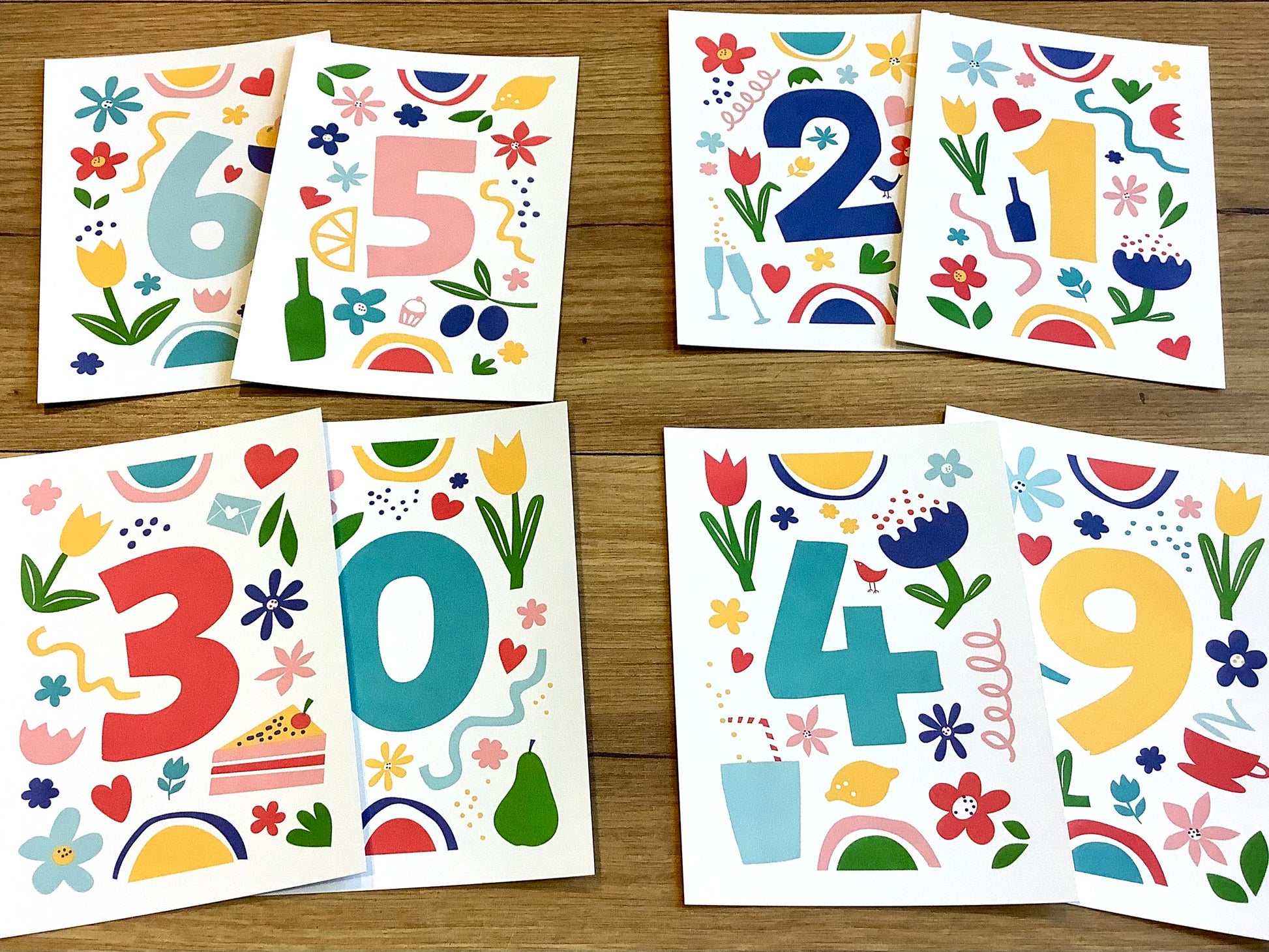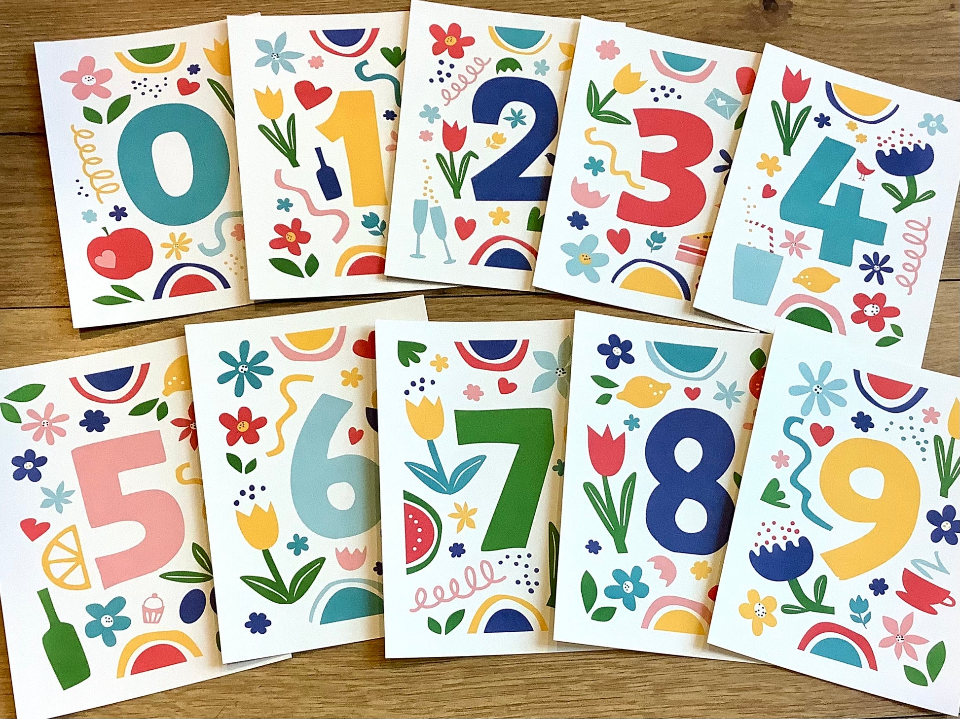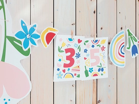 Die Zahlen von 0 bis 9 kann man wunderbar zu jedem Geburtstag oder Jubiläum kombinieren. Sie lassen sich auch zusammen mit der Girlande, die man aus dem Bastelbogen „Flower Power“ machen kann, aufhängen und werden so zu einer tollen Partydekoration.