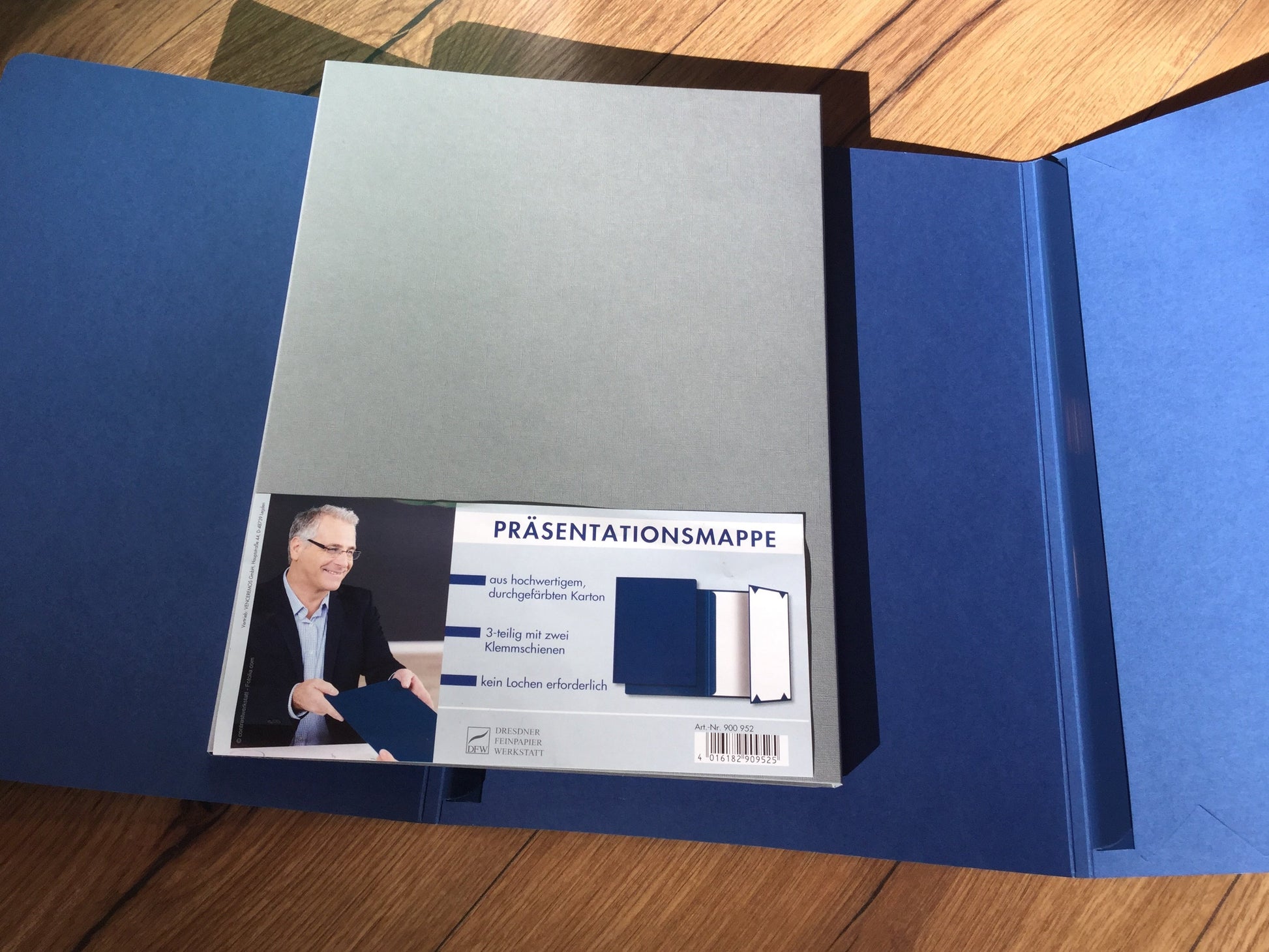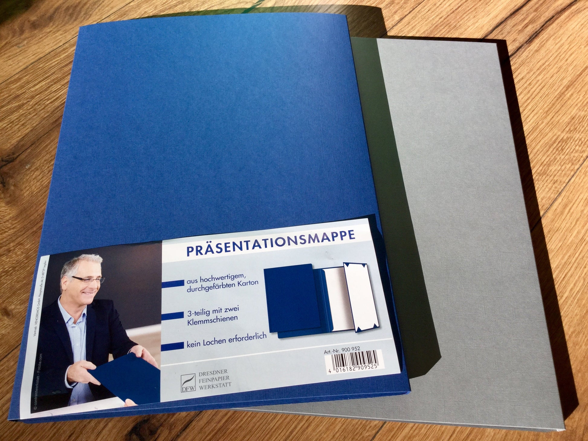 Dreiteilige Präsentationsmappe mit 2 Klemmschienen - auch gut als Bewerbungsmappe nutzbar.