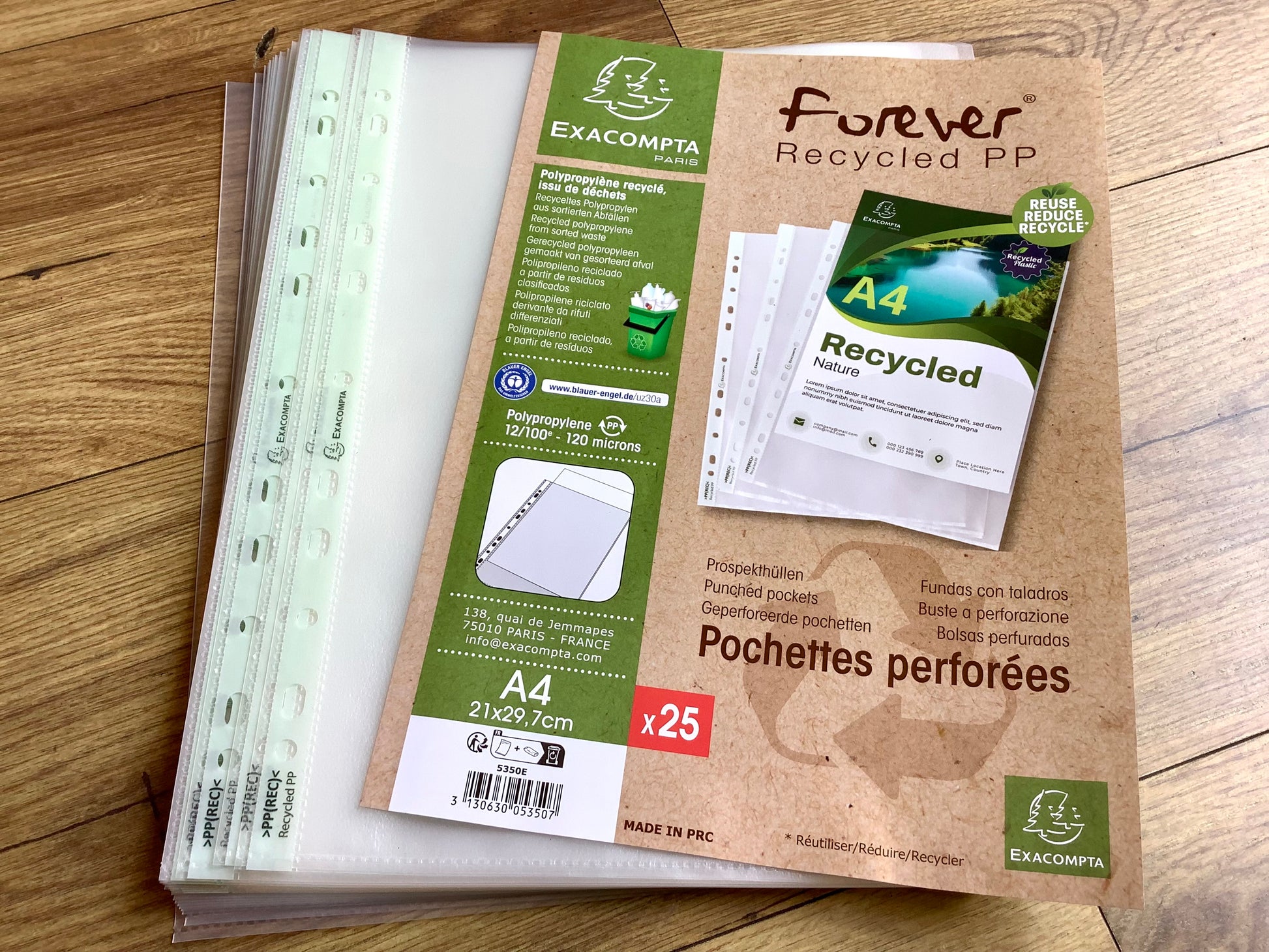 Die Hüllen werden vollständig aus recyceltem Polypropylen hergestellt, das aus Post-Consumer-Abfällen stammt, die gesammelt, sortiert und wiederverwendet wurden.