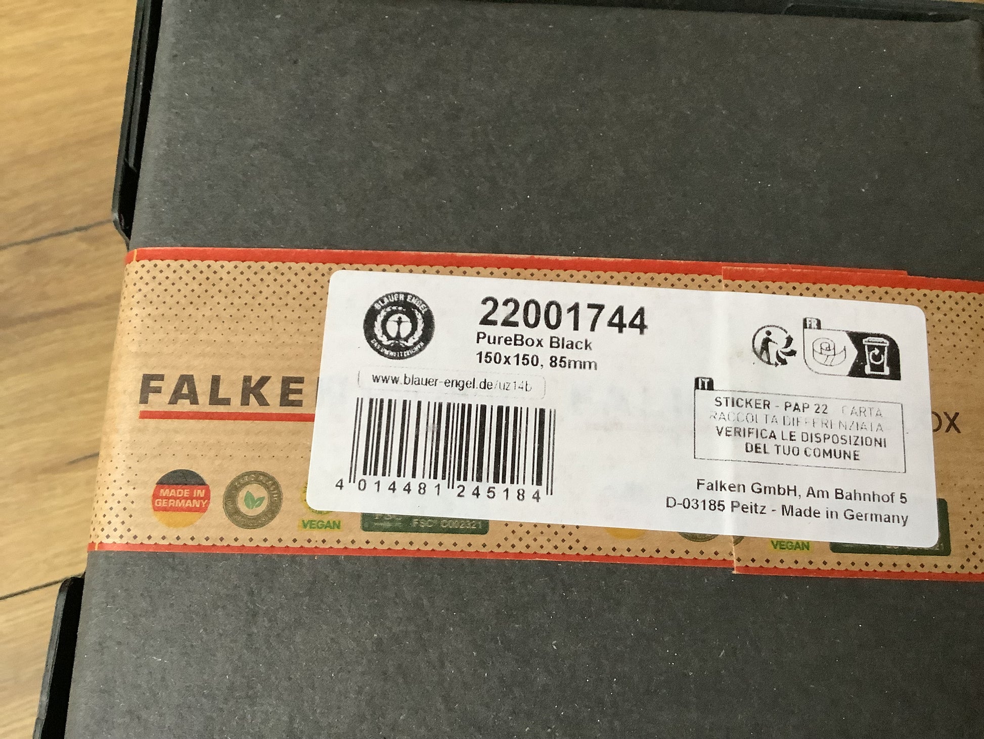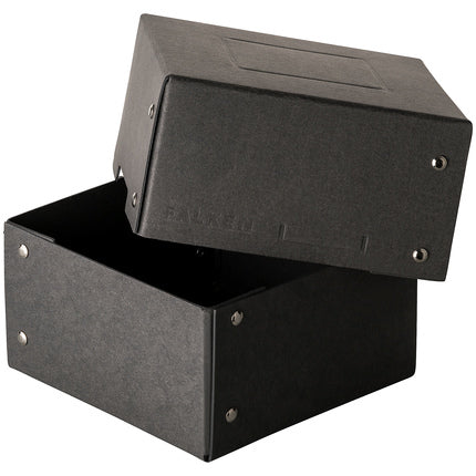 PURE Box Black - Schachteln bestehend aus Box und Deckel, mit klassischen Look aus schwarzer hochwertiger Pappe, sehr hohe Stabilität, genietet, Griffaussparung, Beschriftungsfeld, puristisch, ohne Plastik, ohne Folie, FSC®, Vegan und Blauer Engel zertifiziert - Made in Germany