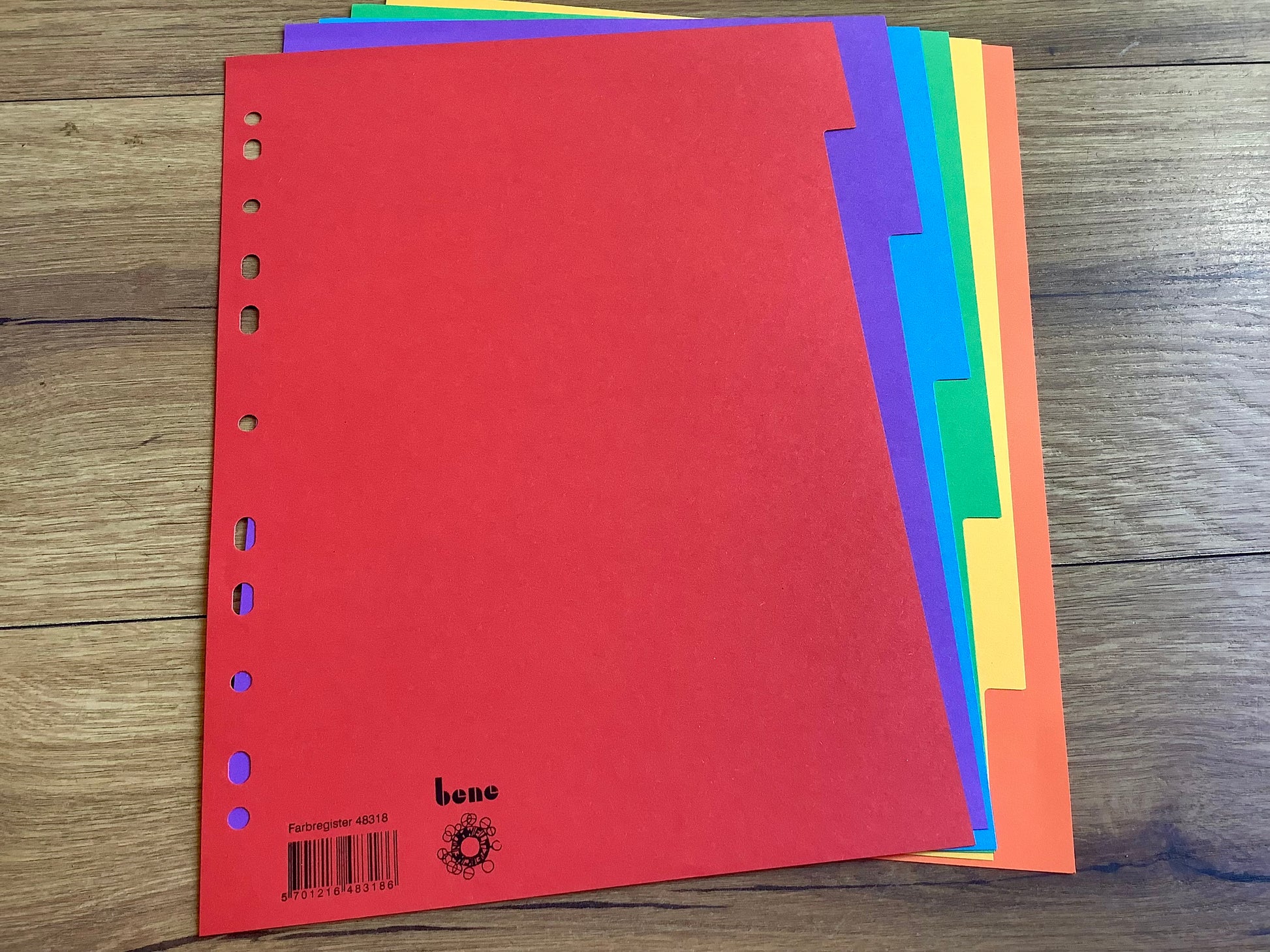- 6 farbige Taben mit Ziffern und Platz für eigene Beschriftung