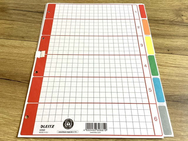 - 6 farbige Taben mit Ziffern und Platz für eigene Beschriftung