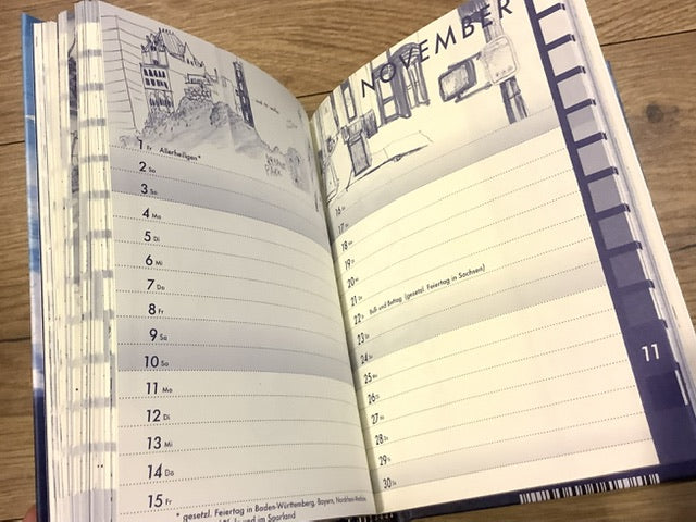 Es war ein origineller und kreativer Wochen-Buchkalender der lllustratorin und Verlegerin Annette Köhn, jaja-Verlag Berlin. Liebevoll gestaltet mit vielen Themen und Ideen. Und viel Platz für Eigenes. (2024)