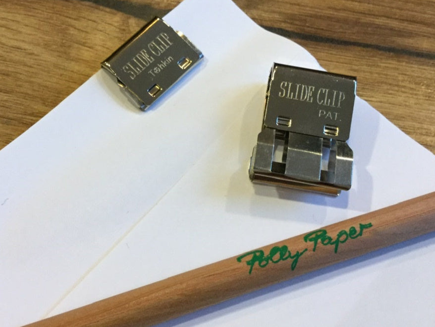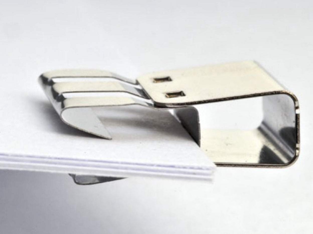 Praktische japanische Edelstahl-Klemmen, mit denen man bis zu 30 Blatt elegant und stylish zusammenhalten kann.