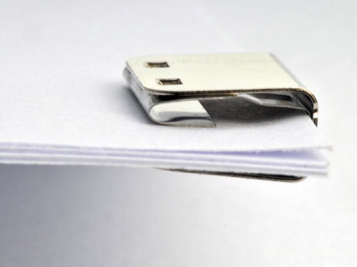 Anders als bei einer Drahtheftung kann man die Papiere aber auch mit einem Klick wieder auseinandernehmen.