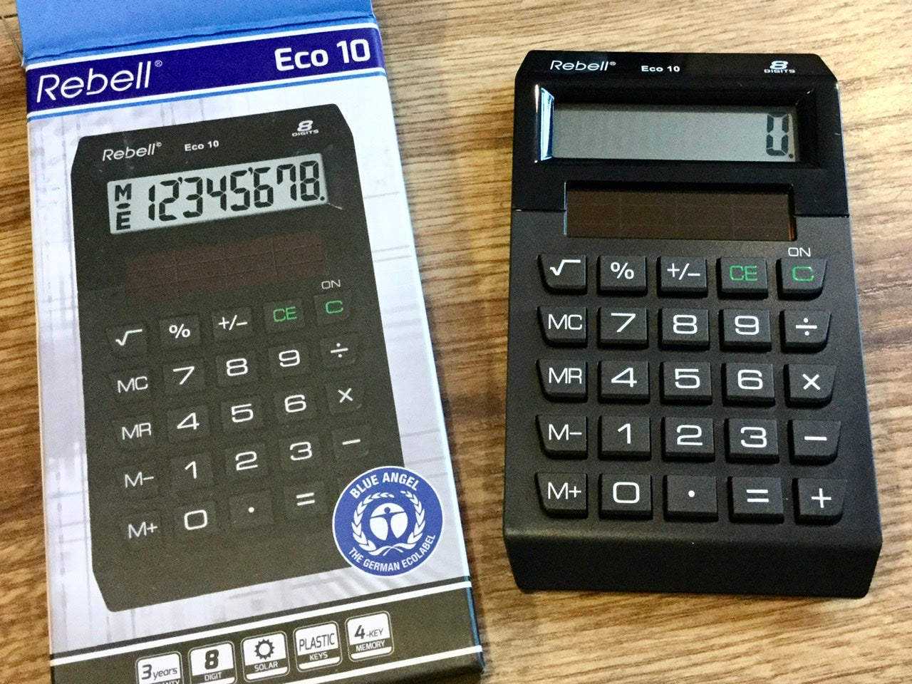 Der Solar-Taschenrechner "Rebell Eco 10" ist ausschließlich solarbetrieben, braucht also keine Batterie!