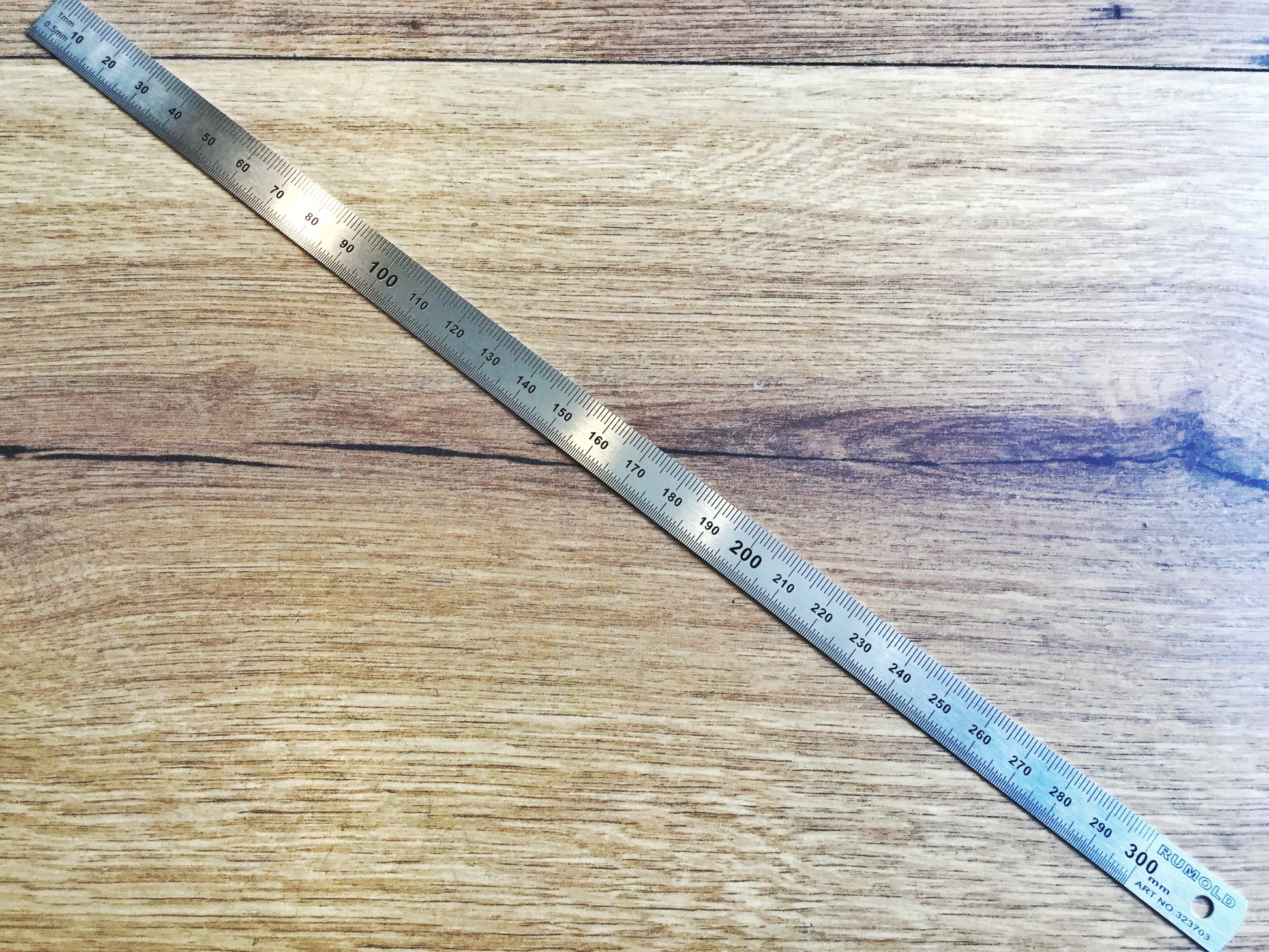 30 cm langes Lineal aus rostfreiem Edelstahl, mit mm- und 1/2 mm-Einteilung,