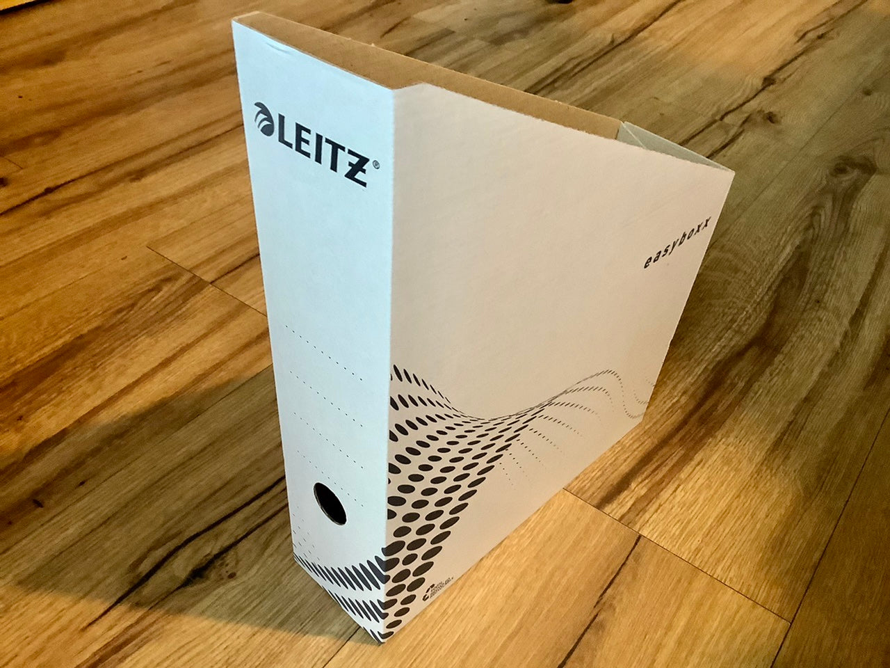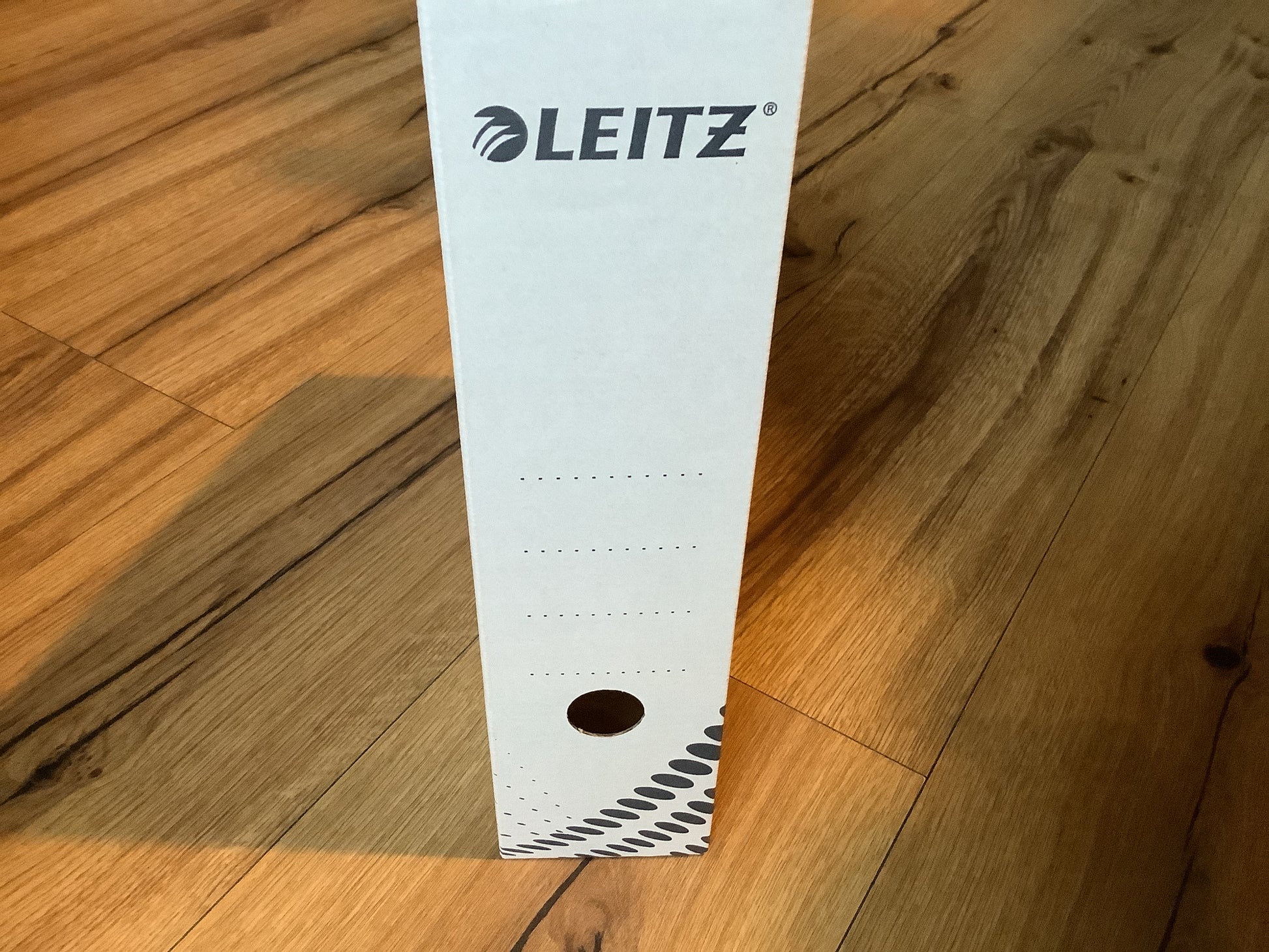 - weiß mit dunkelgrauem Punktmuster und LEITZ-Schriftzug
