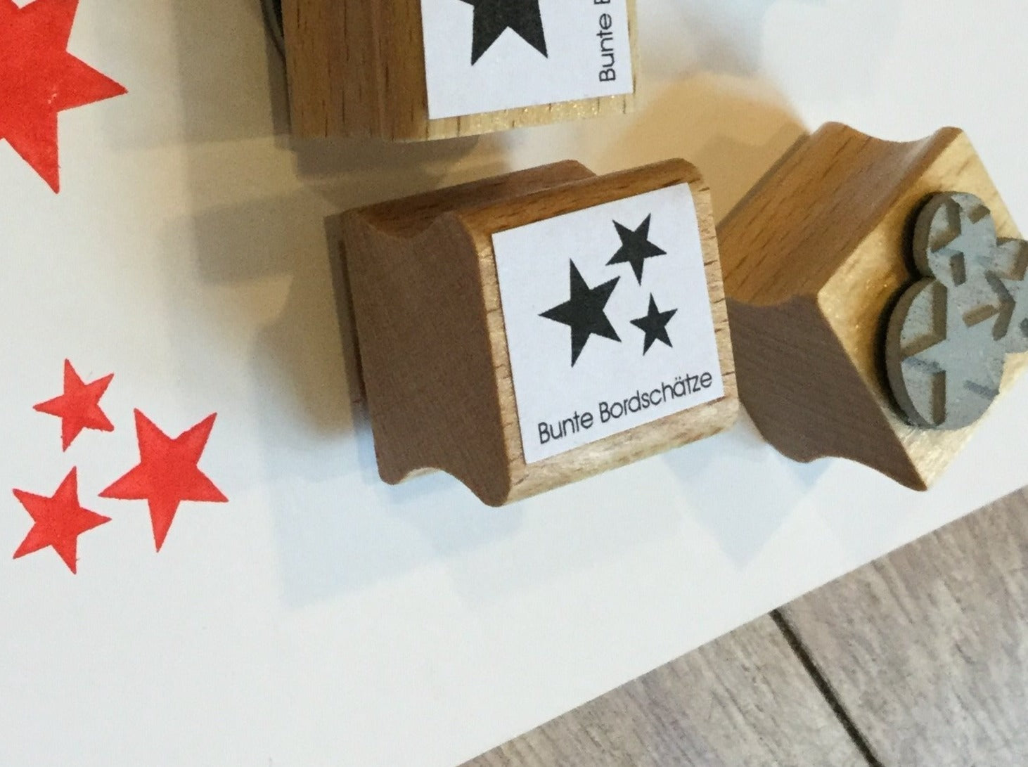2 x 2 cm großer Stempel mit 3 Sternen von "Bunte Bordschätze" aus Berlin.