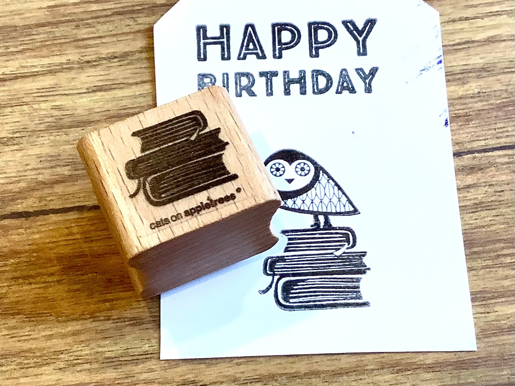 Kleiner Stempel von „cats on appletrees“, hergestellt in Dresden.
