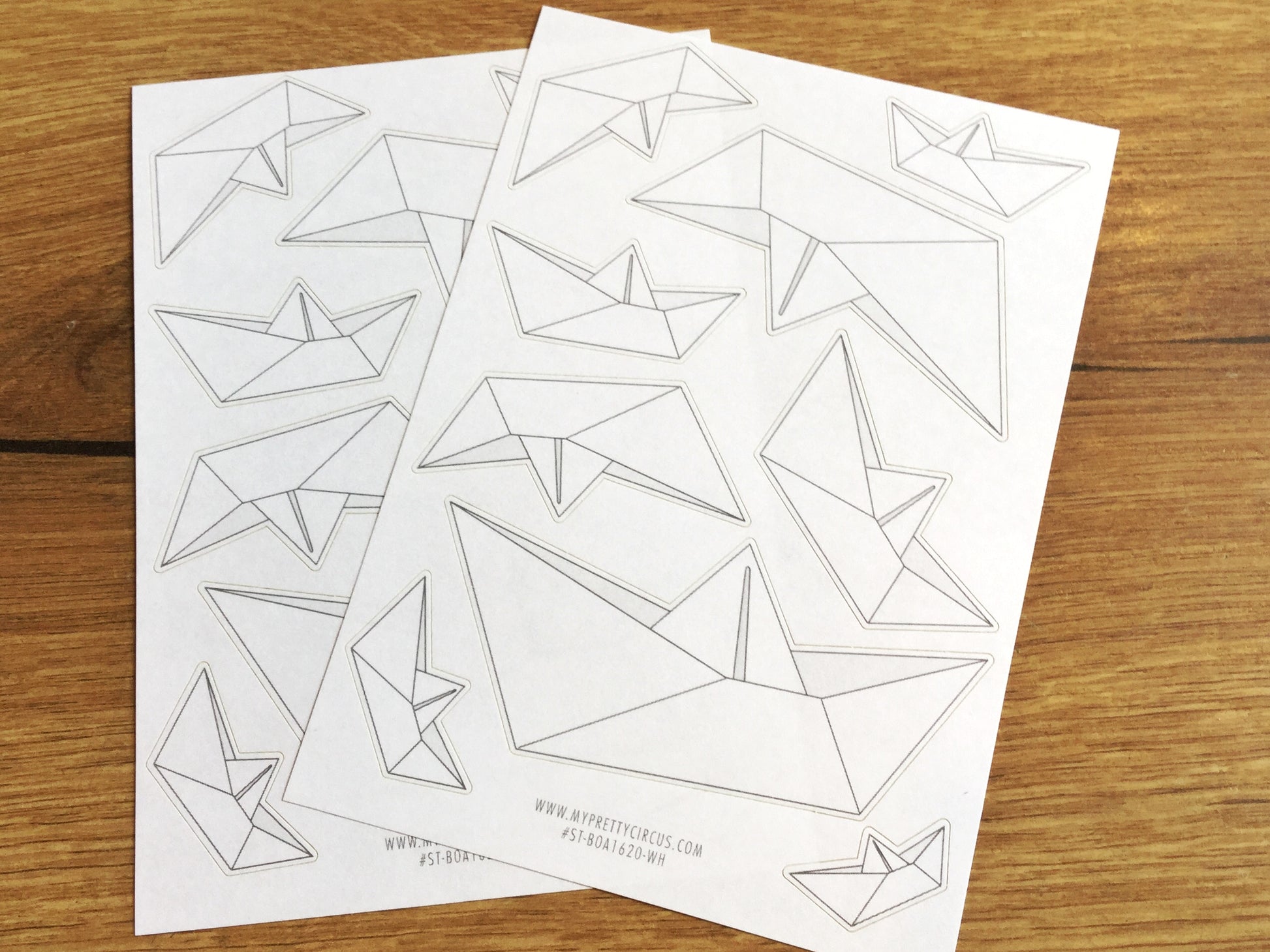 2 Bogen mit je neun Papierschiffchen-Aufklebern unterschiedlicher Größe - 2-8 cm.
