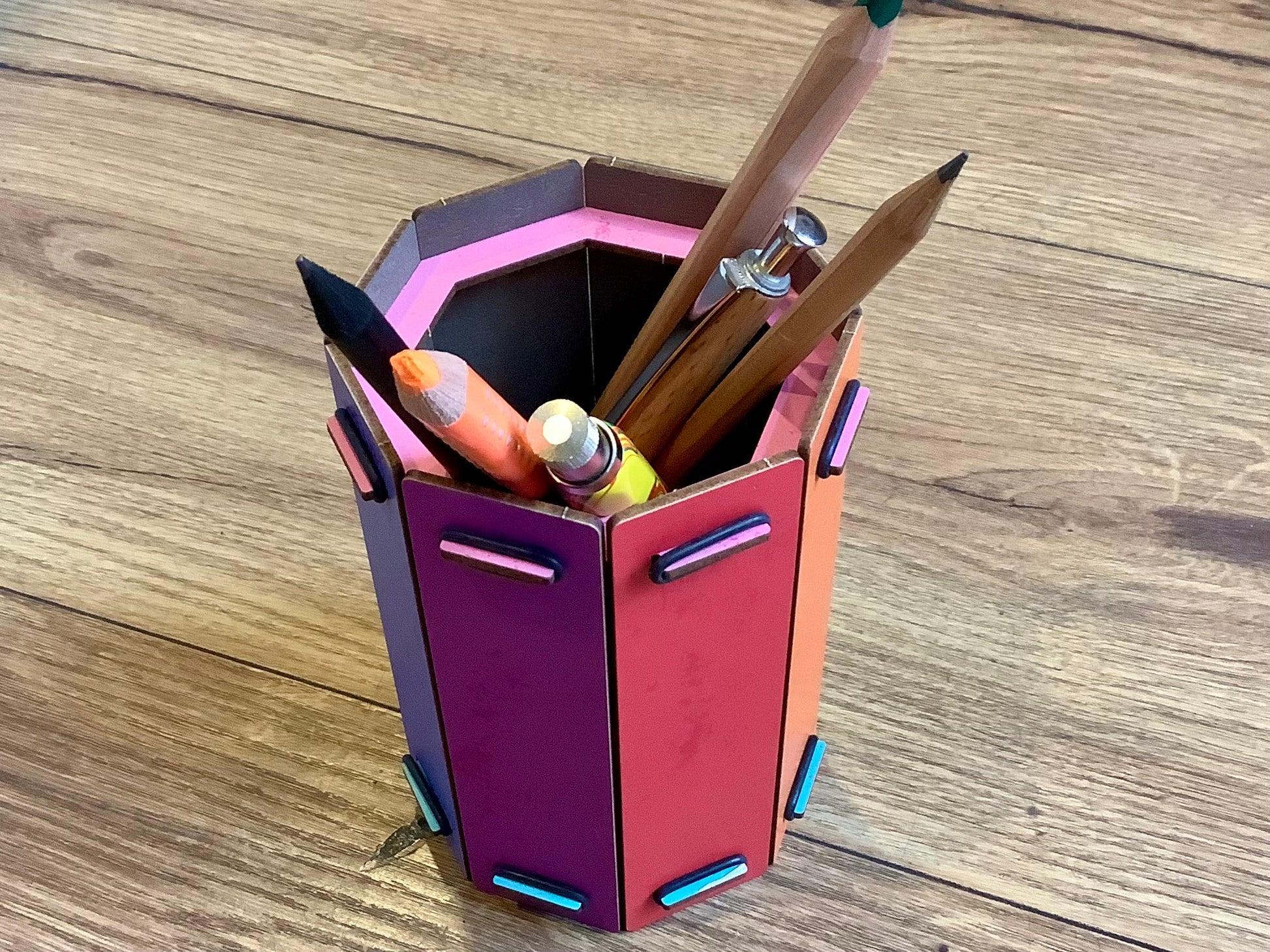 Achteckige Stiftebox in Regenbogenfarben von WERKHAUS.