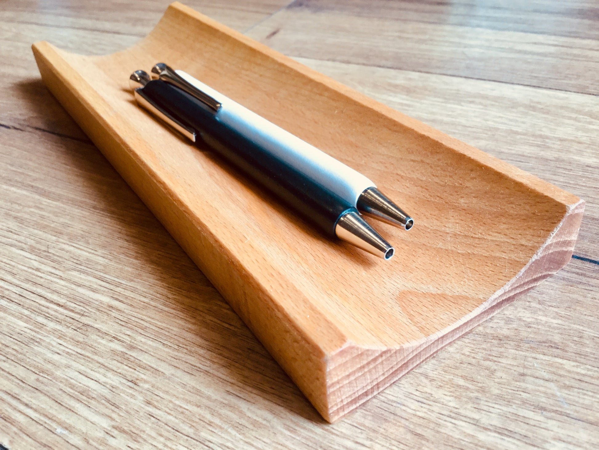 Flache Federschale / Stifteschale aus langlebigem Buchenholz natur, geölt.