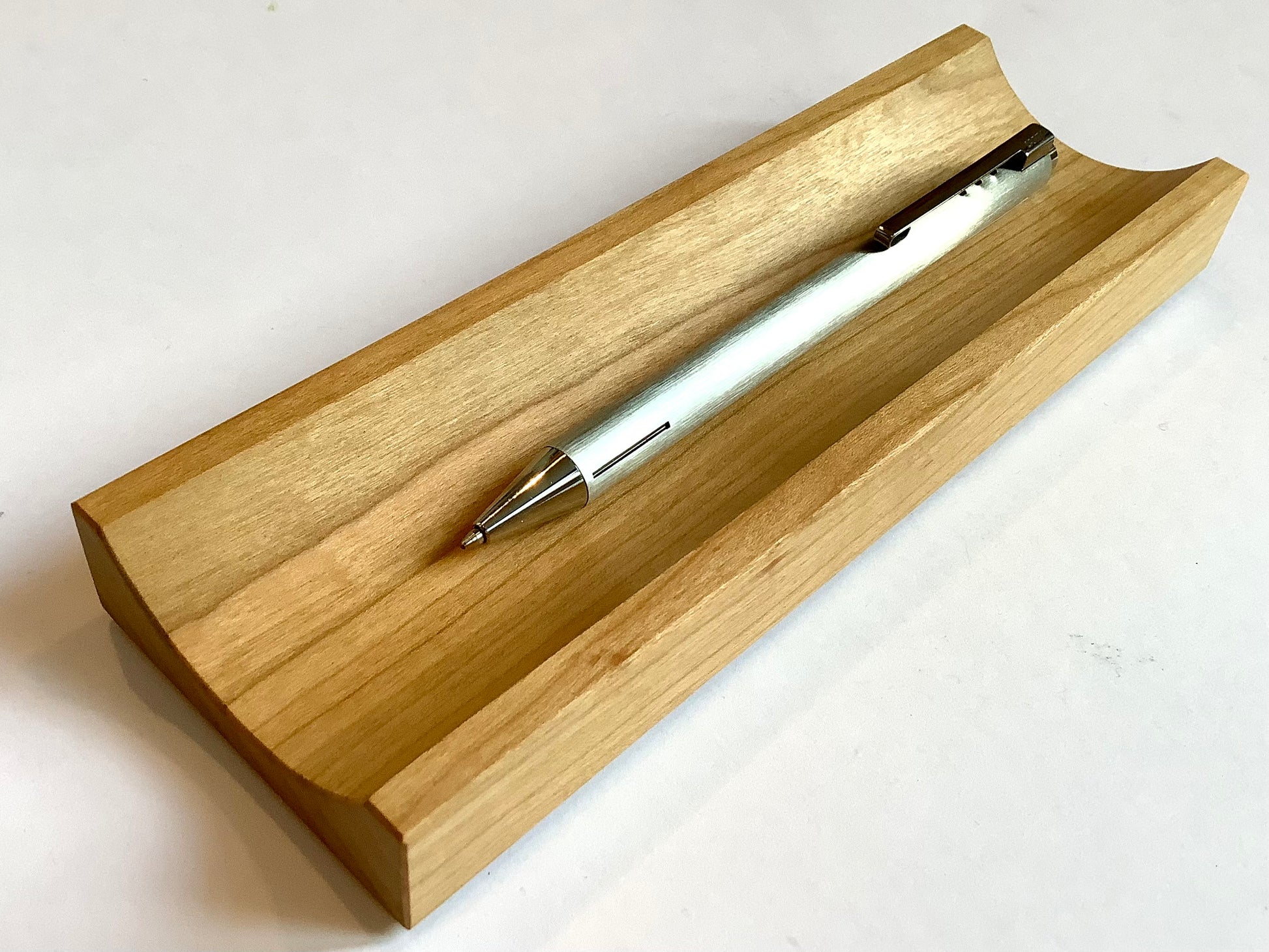 Edle Stifteschale aus Kirschbaumholz. Warmer gelbbrauner Ton.