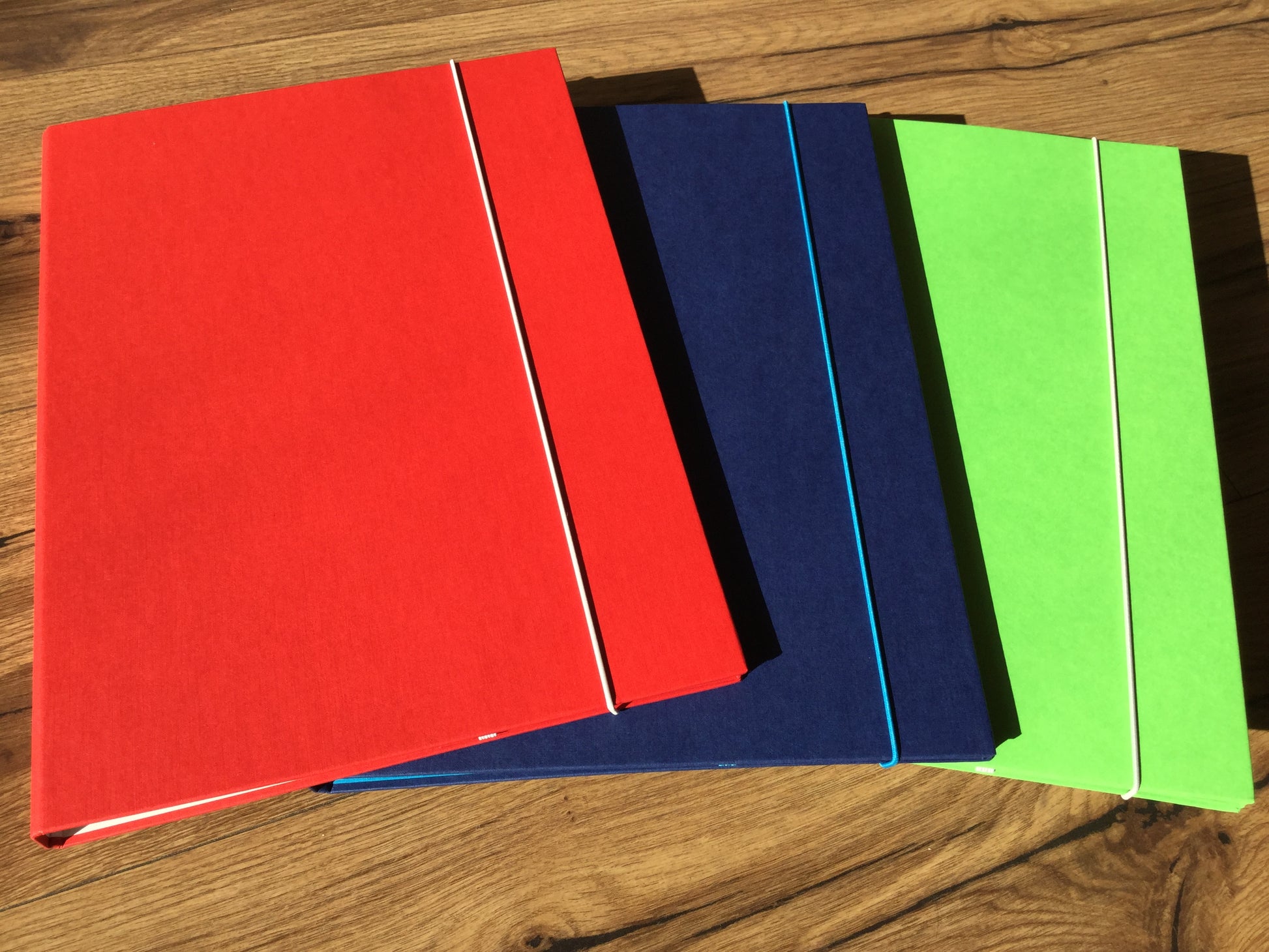 Knallig und dennoch elegant: zweifarbige Präsentations-/ Tagungsmappe aus Recyclingkarton.