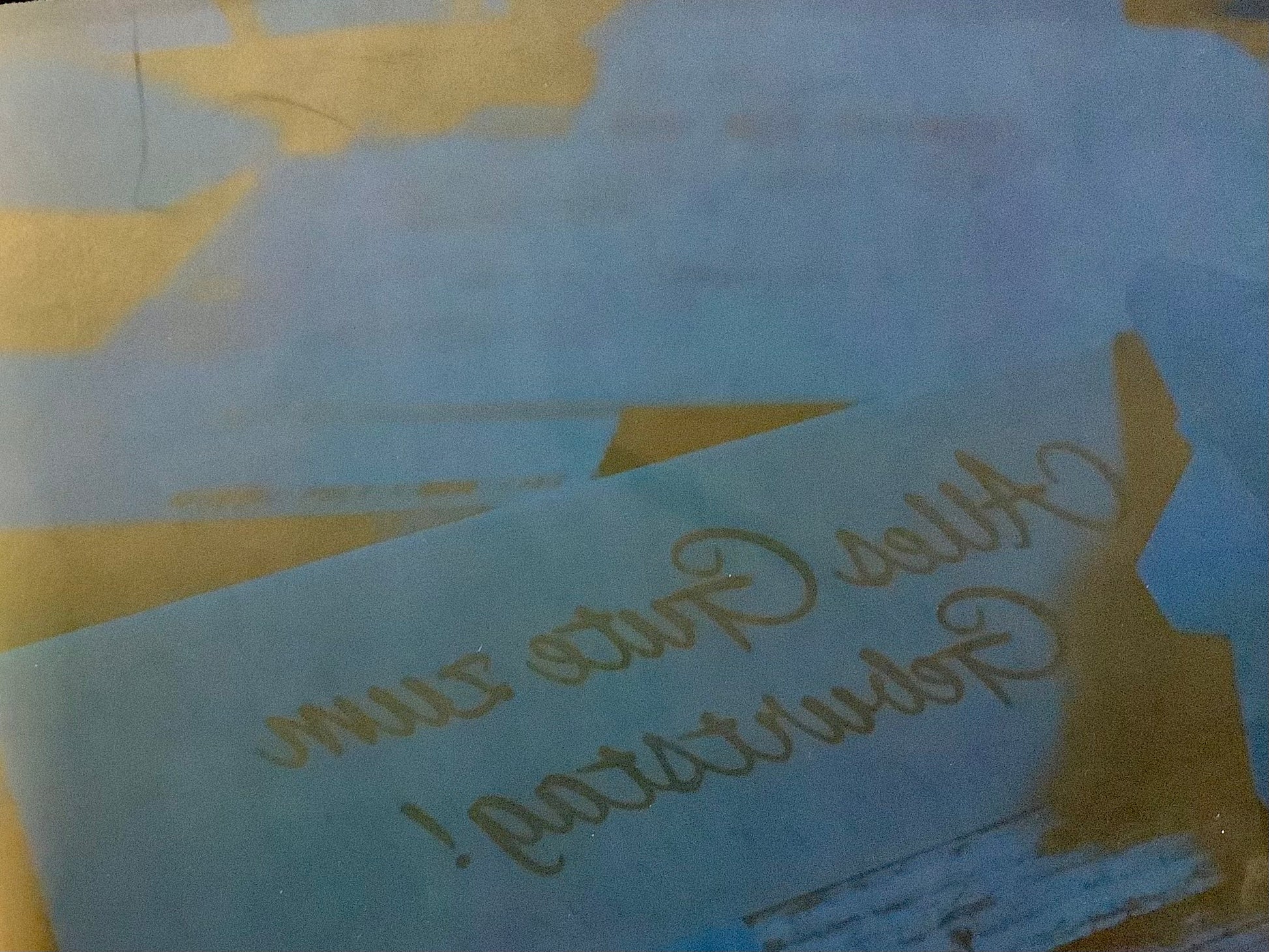 Unikat, Drucktuch #354 (außen blau gemustert, innen rostroter Filz)