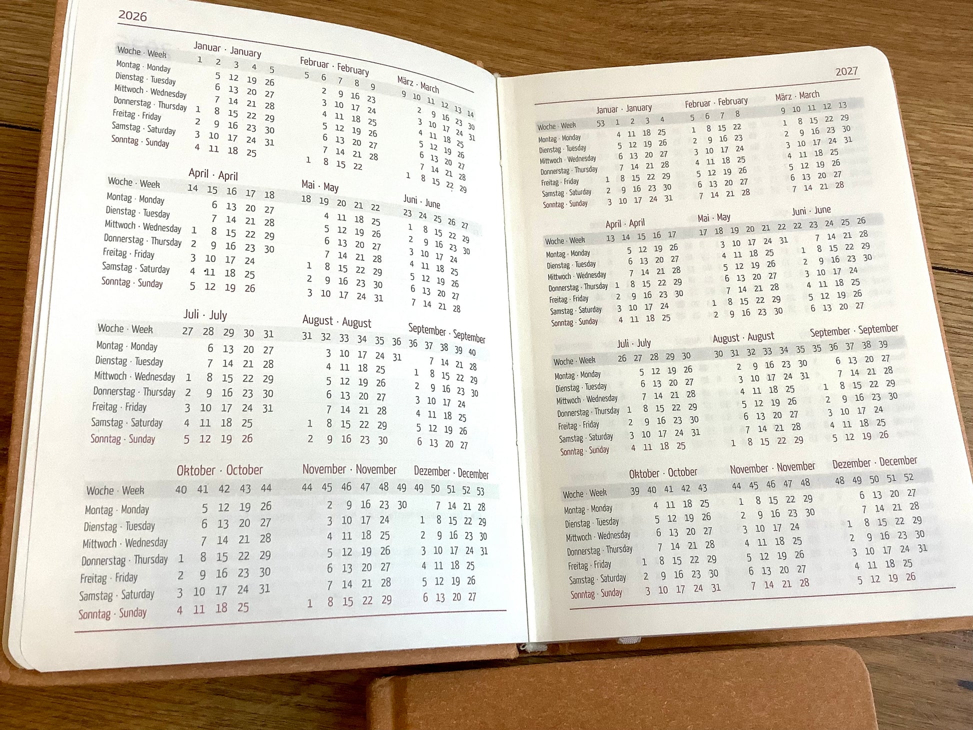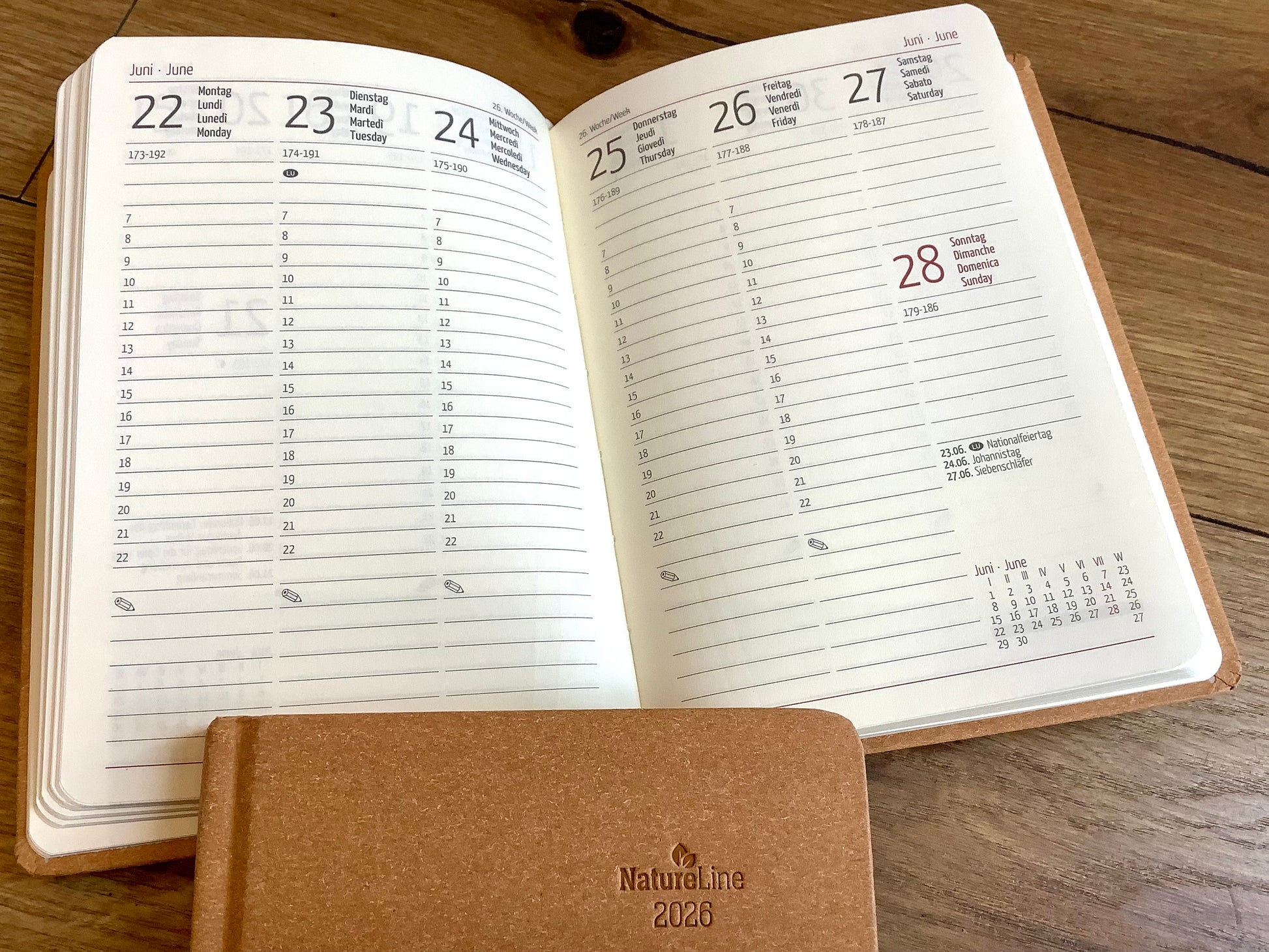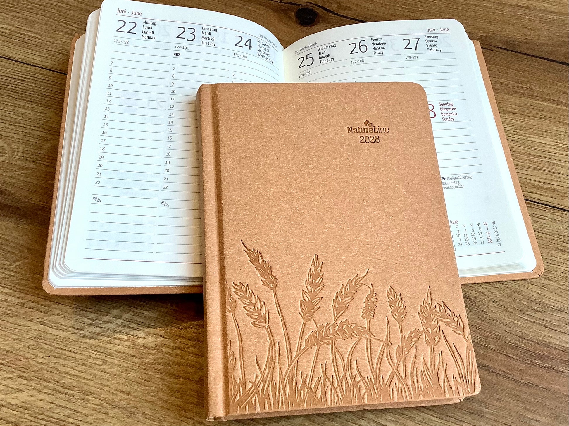 Taschenkalender A6 10x15cm 1W/2S Nature Line braun 2026