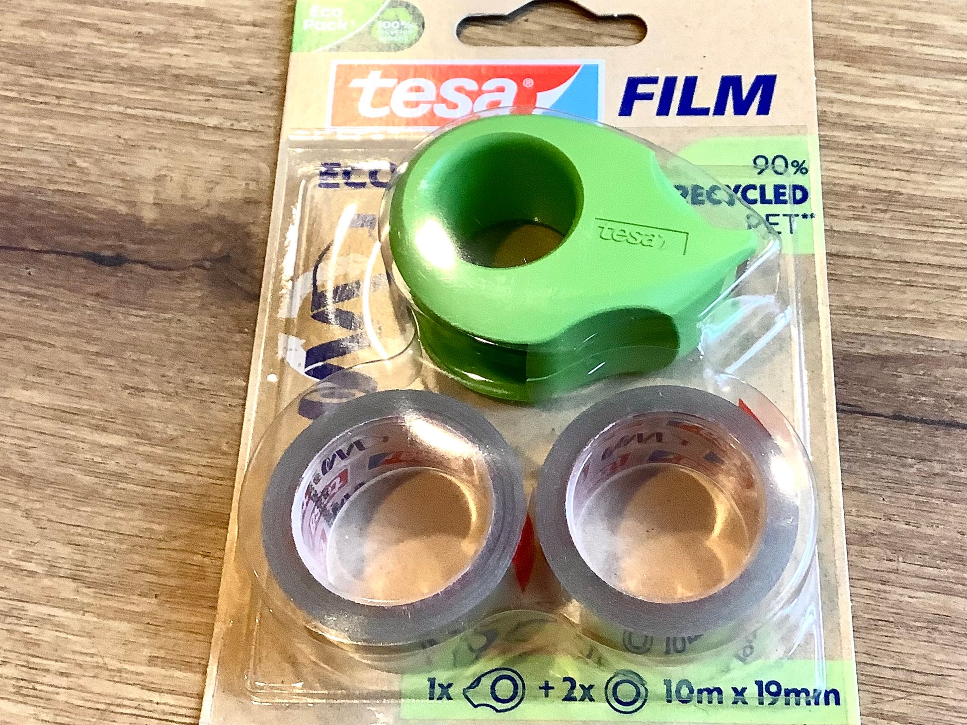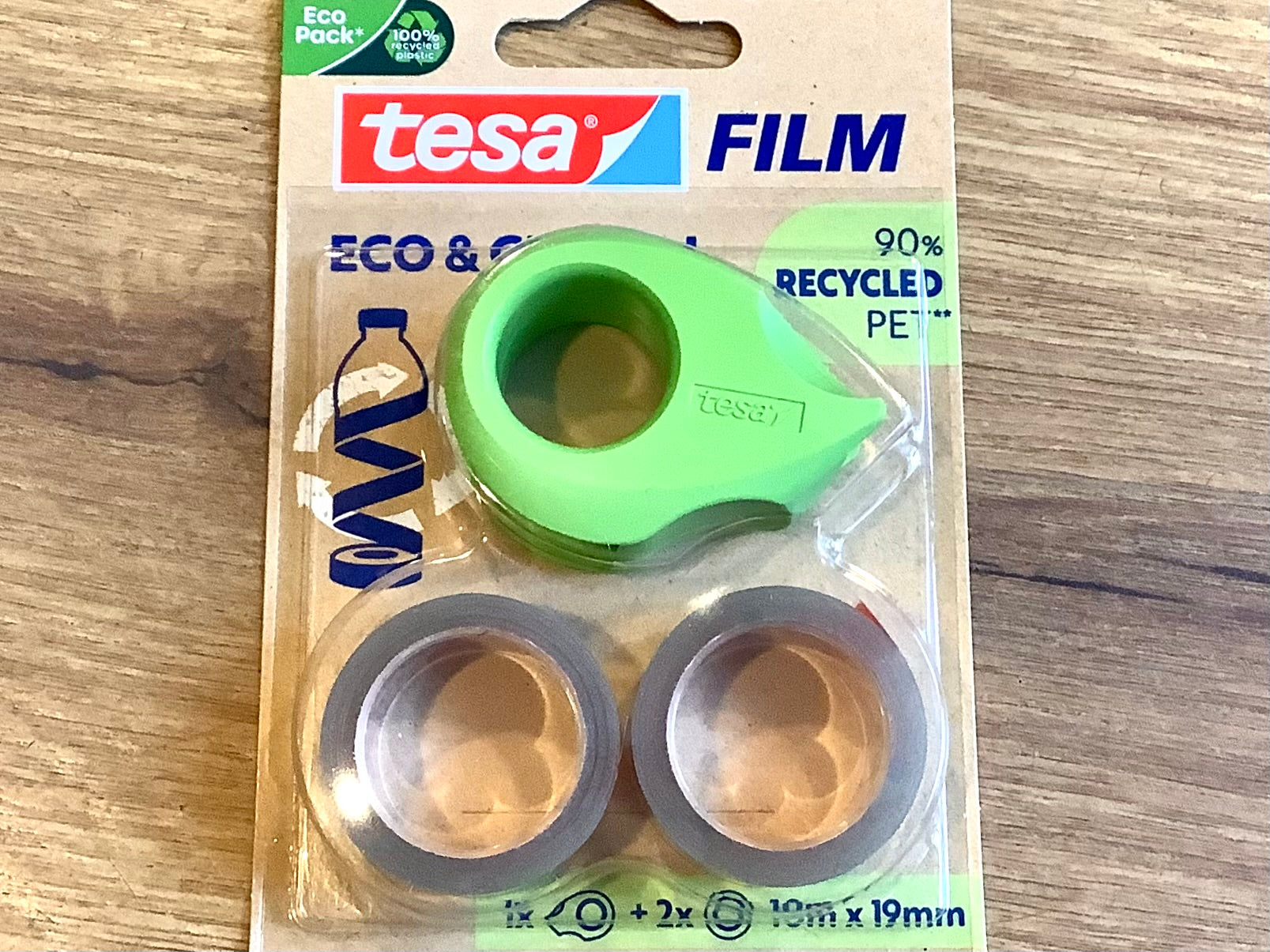 - dazu 2 Rollen Klebeband eco&clear, ebenfalls aus recyceltem Kunststoff (19mm x 10m)