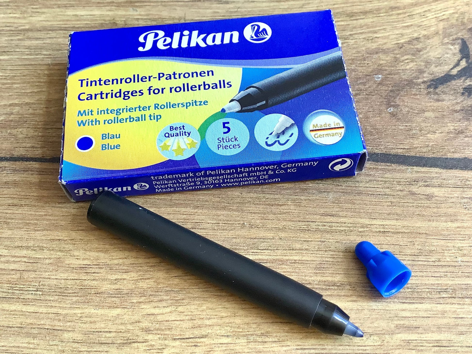 In diesen Tintenroller-Patronen wird die Tinte über eine bewegliche Kugel auf das Papier aufgetragen/abgerollt, ähnlich wie bei einem Kugelschreiber.