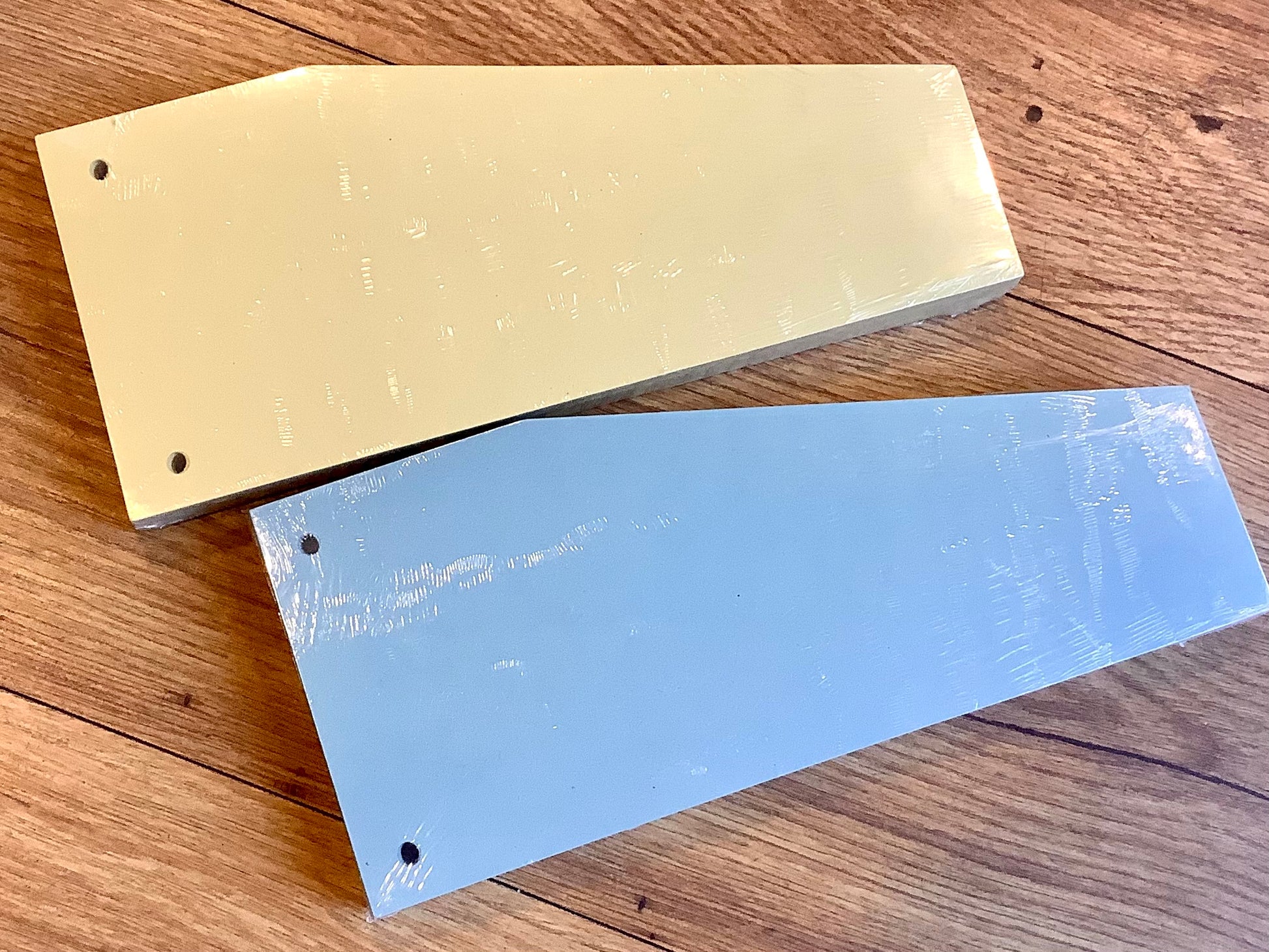 - 23 cm lang, an der gelochten Seite 10,5 cm breit, an der anderen 6 cm